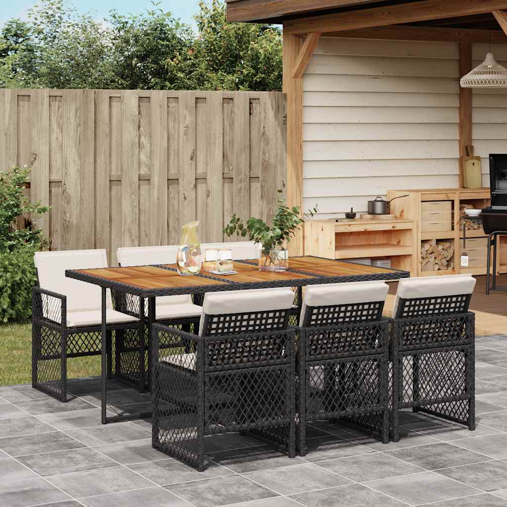 7-tlg. Garten-Essgruppe mit Kissen Schwarz Poly Rattan