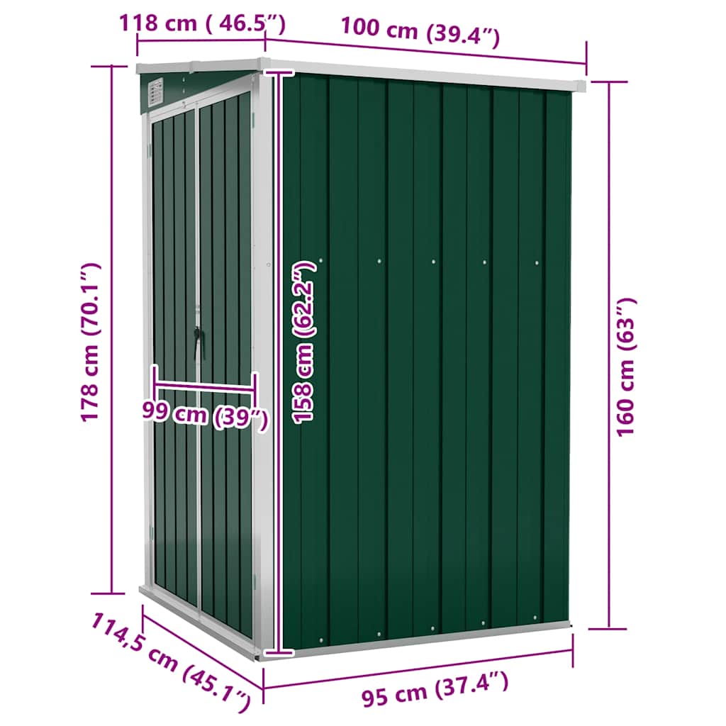 Anbauschuppen Grün 118x100x178 cm Verzinkter Stahl