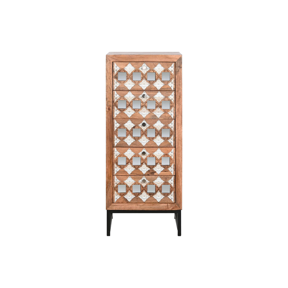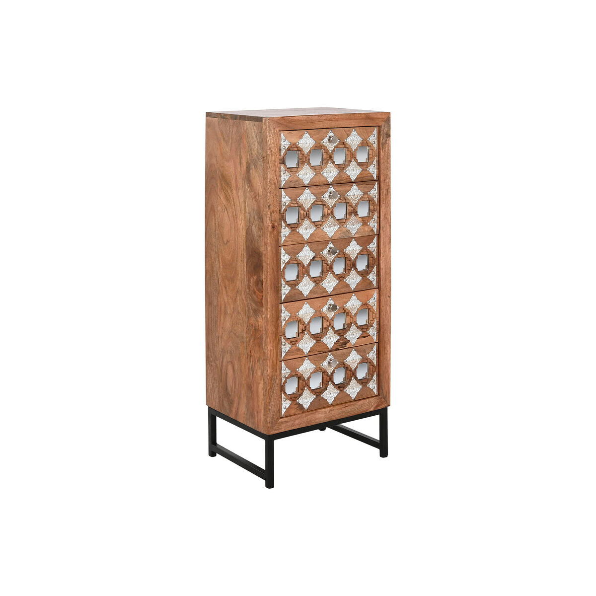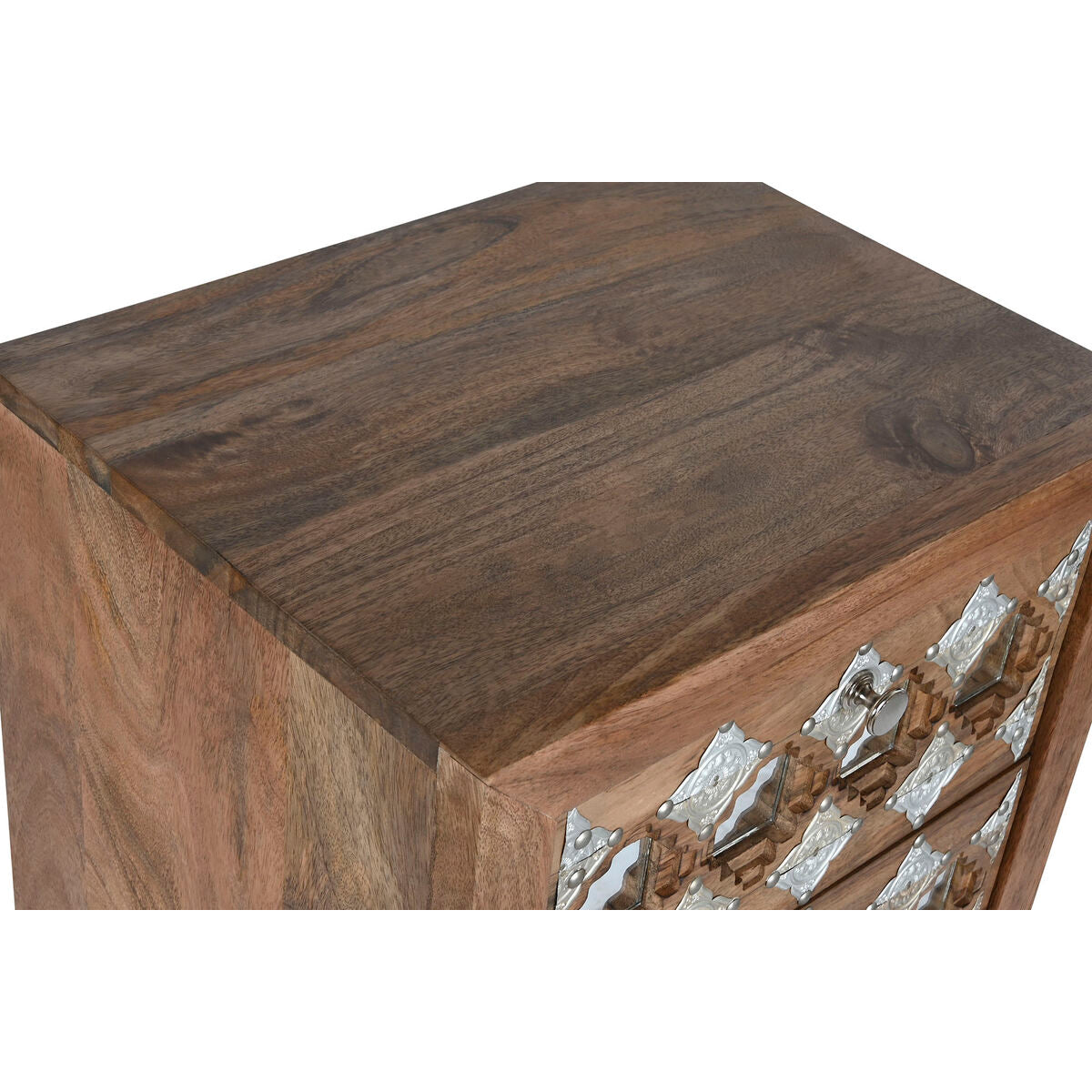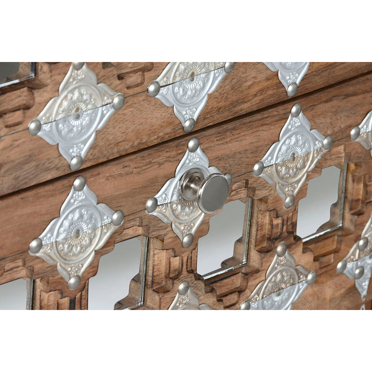 Schubladenschrank Home ESPRIT Braun Schwarz Silberfarben Mango-Holz Spiegel Indianer 45 x 35 x 105 cm