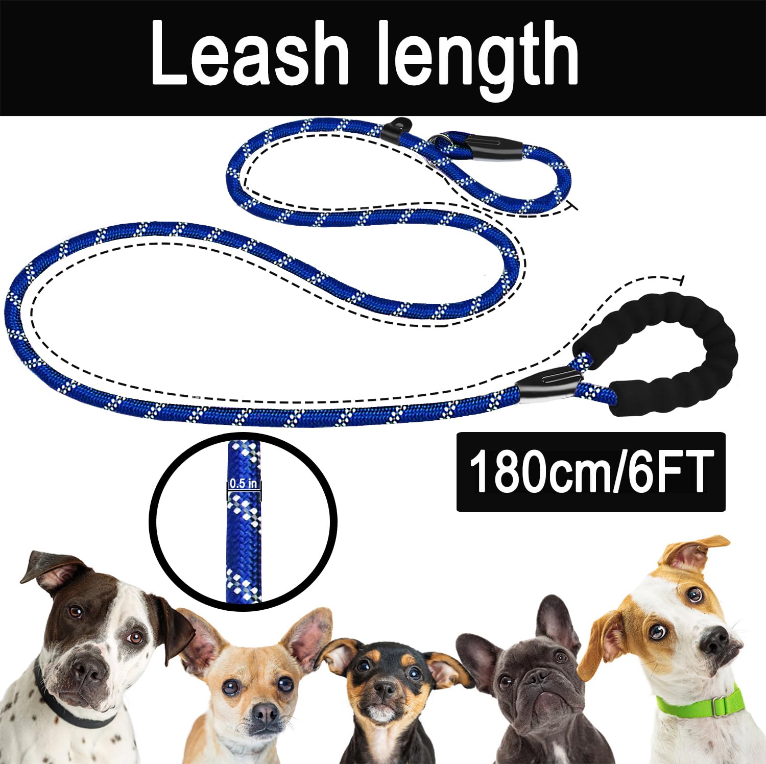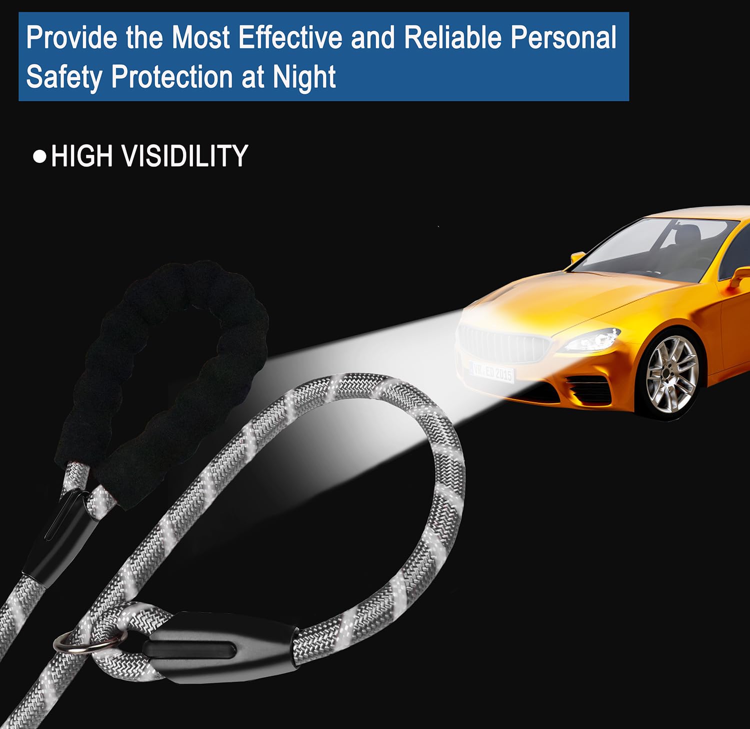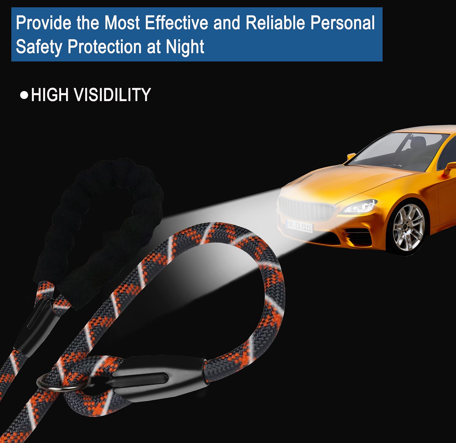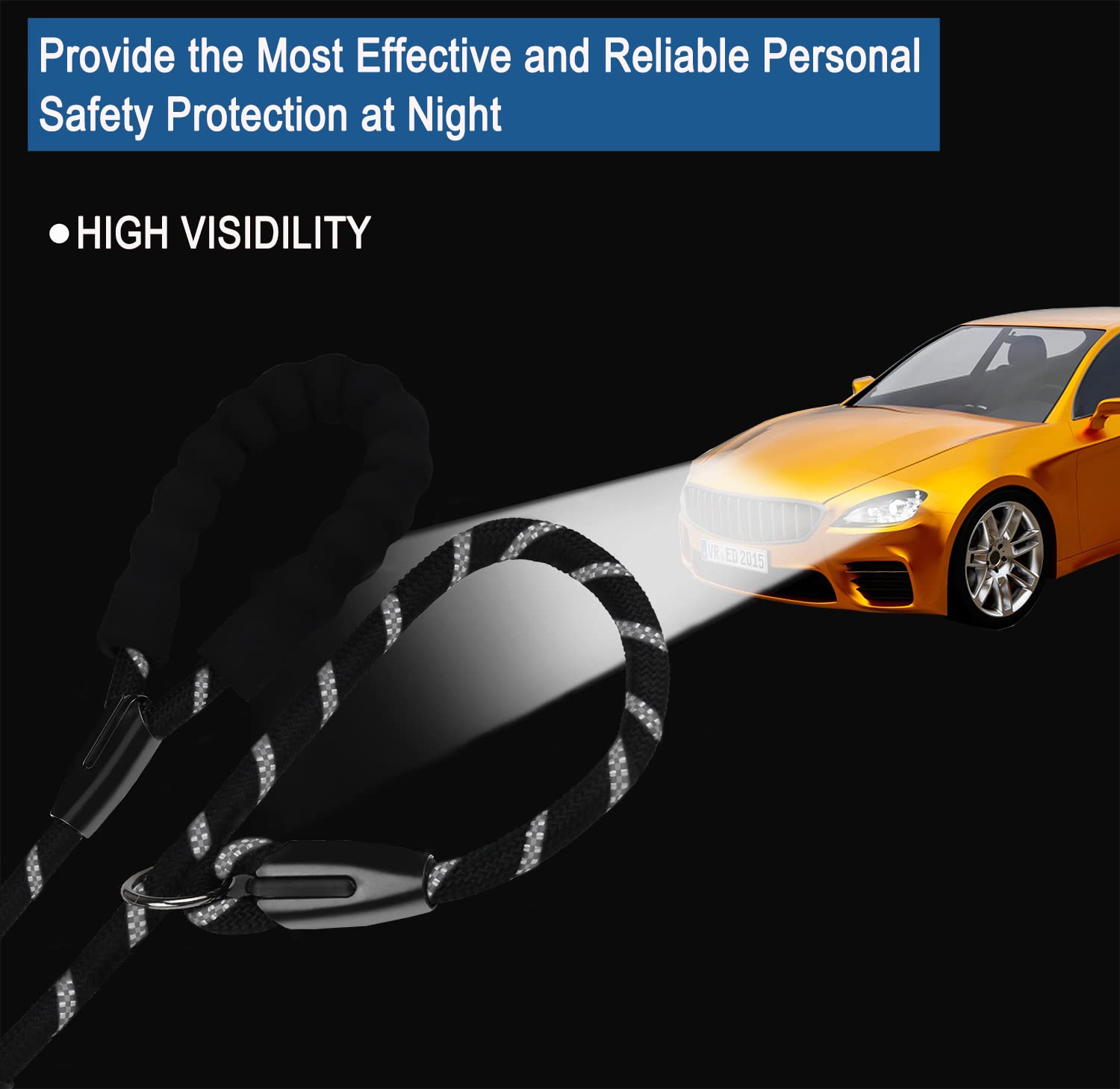 Hundeleine, 1,8 m lange, robuste Hundeleine, strapazierfähige Premium-Qualität, starke Seil-Schlupfleine mit komfortablem, gepolstertem Griff und hochreflektierenden Fäden für kleine, mittlere und große Hunde, (Schwarz)