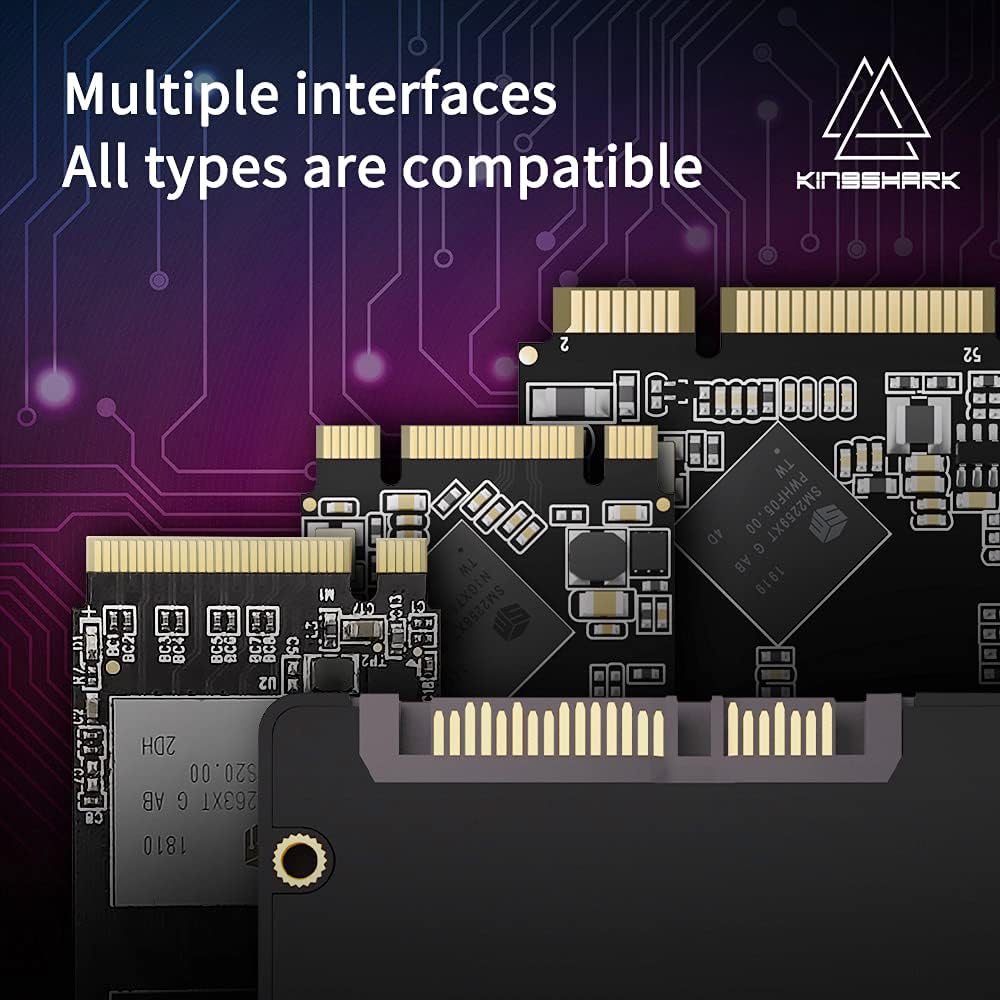 • 【Datensicherheit】 KingShark SSD unterstützt fehlerhaftes Blockmanagement, TRIM-Befehl, Garbage Collection-Technologie und SMART. Das Überwachungssystem und die ECC-Technologie (Fehlerprüfung und -korrektur) sorgen für optimierte Leistung und erhöhte Sicherheit bei der Datenübertragung.