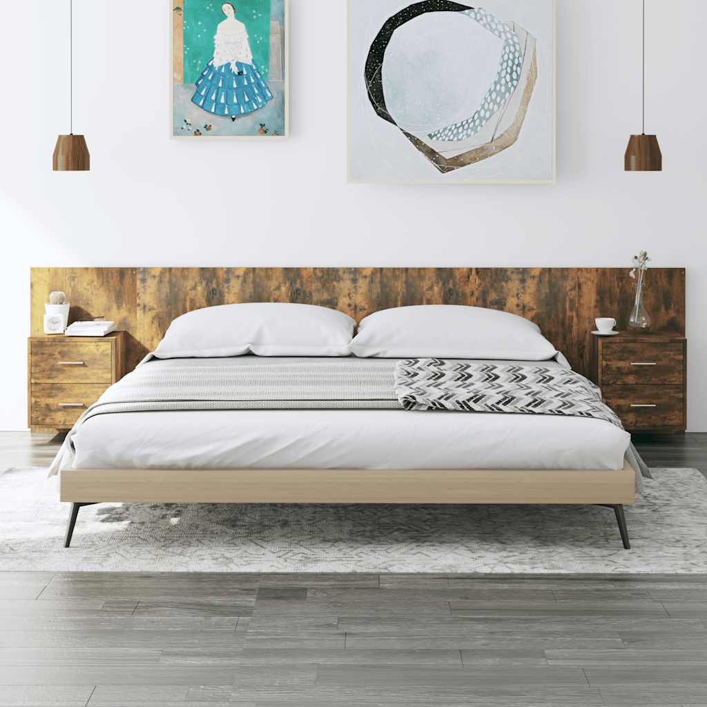 Kopfteil mit Nachttischen Räuchereiche Holzwerkstoff