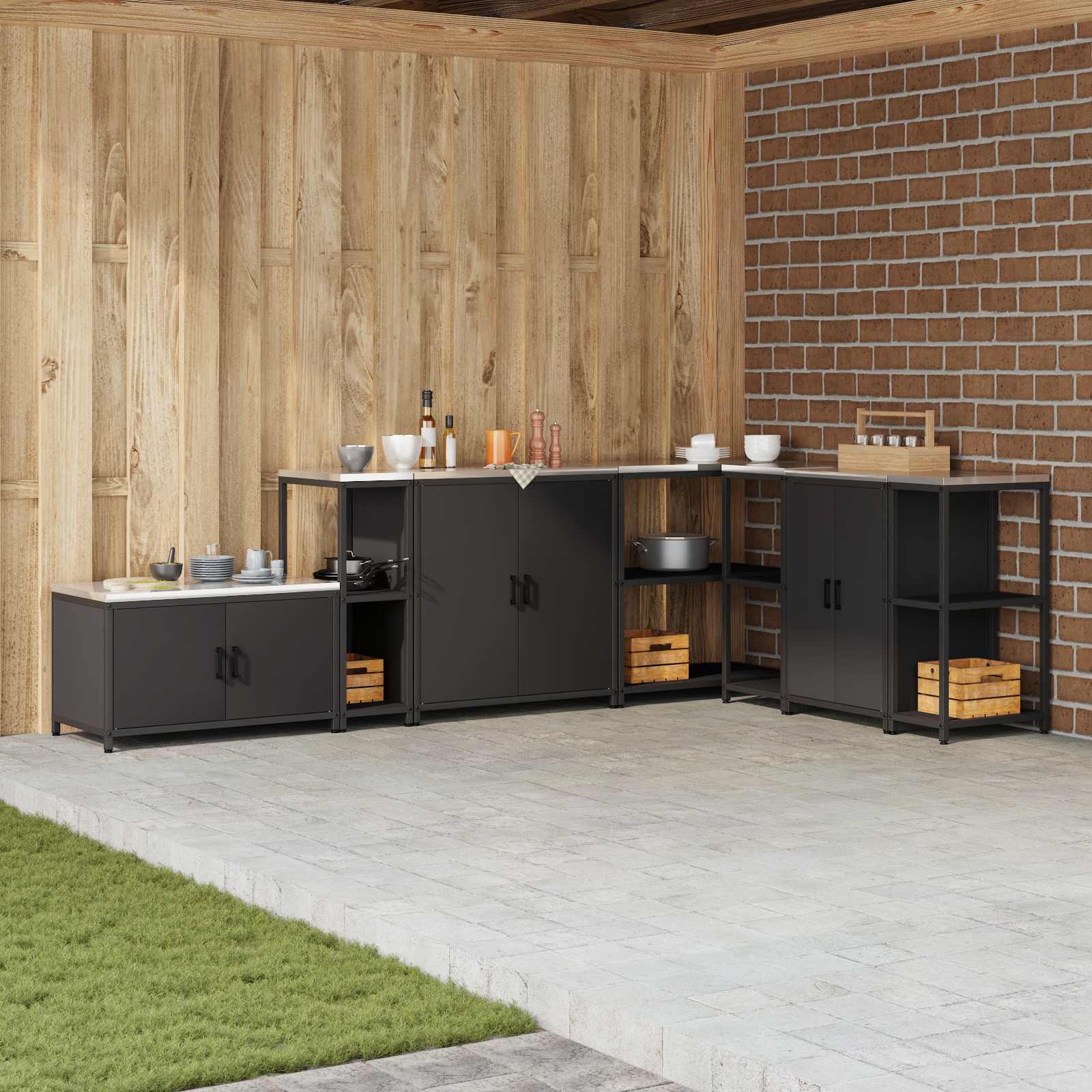 Dieses Küchenregal kombiniert modernes Design mit praktischen Funktionen und verbessert den Stauraum, während es das Aussehen deiner Küche aufwertet. Mit seiner schlanken, rechteckigen Form und klaren Linien strahlt es Eleganz aus und ist gleichzeitig äußerst nützlich. Hergestellt für den Innenbereich, eignet sich dieses Regal perfekt für die Organisation von Utensilien, Töpfen oder Lebensmitteln in jeder modernen Küche. Der robuste Stahlrahmen sorgt für die nötige Stabilität für den täglichen Einsatz und hilft dir, deine Küche in ein gut organisiertes Reich für Koch- und Unterhaltungsliebhaber zu verwandeln. Robuste Stahlkonstruktion Das Küchenregal ist aus qualitativ hochwertigem Stahl gefertigt, der für den täglichen Gebrauch ausgelegt ist und die Stabilität gewährleistet. Die elegante Stahloberfläche verleiht jedem Küchenambiente einen industriellen Flair. Stahl ist langlebig und stark und sorgt für langfristige Qualität mit minimalem Verschleiß und Alterung. Bring frischen Wind in deinen Raum mit einer zuverlässigen Lösung, die modernen Küchen standhält. Brett-Regale Diese Aufbewahrungseinheit verfügt über mehrere Regalböden, ausreichend Platz für alle Küchenutensilien. Mit der Fähigkeit, verschiedene Materialien wie MDF oder Sperrholz zu unterstützen, bieten diese Regale eine zuverlässige und flexible Lösung für deine Lagerbedürfnisse und erleichtern den Zugriff auf alles. Moderner Stil Dieses Regal zeichnet sich durch seine schlichte Eleganz und Funktionalität aus. Der moderne Stil mit klaren Linien fügt sich nahtlos in die bestehende Kücheneinrichtung ein, sodass du einen einheitlichen Look erhältst. Es lässt sich mühelos in verschiedene Küchenstile integrieren und bringt Stil und Funktionalität. Einfache Pflegeanweisungen Die Montage ist kinderleicht und du brauchst nur einen Schraubendreher. Um das Regal in Schuss zu halten, reicht es, die Oberfläche mit einem feuchten Tuch abzuwischen. Halte deine Küche ordentlich und attraktiv mit dieser pflegeleichten Aufbewahrungslösung. Raumoptimierung Das Regal ist so konzipiert, dass es die Raumnutzung maximiert und bietet hervorragenden Stauraum für Küchen aller Größen. Es sorgt dafür, dass essentielle Gegenstände ordentlich und griffbereit bleiben und wenn nötig kein wertvoller Arbeitsbereich verloren geht, egal ob in kleinen Wohnungen oder großzügigen Küchen.