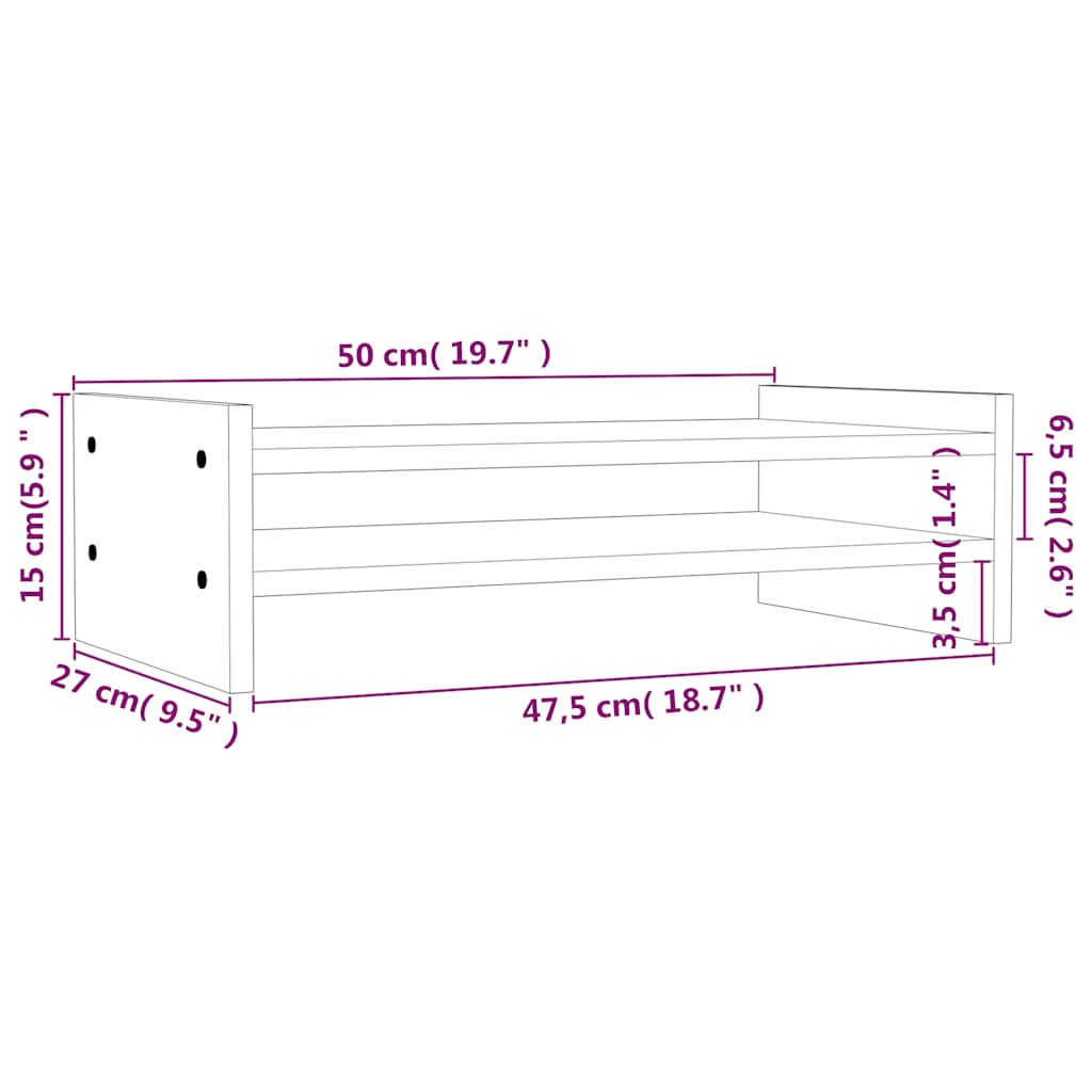 Monitorständer 50x27x15 cm Massivholz Kiefer