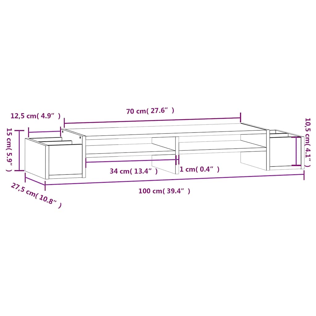 Monitorständer Honigbraun 100x27,5x15 cm Massivholz Kiefer