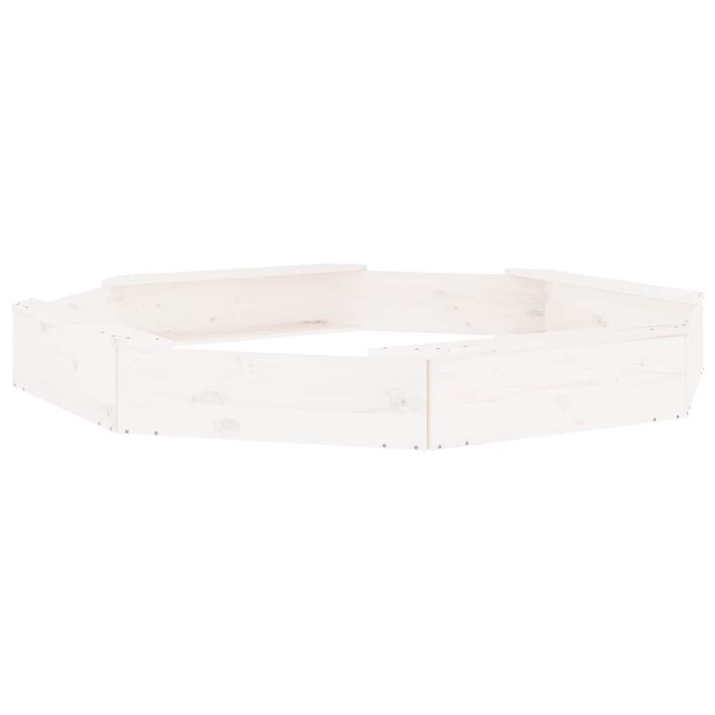 Sandkasten mit Sitzen Weiß Achteck Massivholz Kiefer