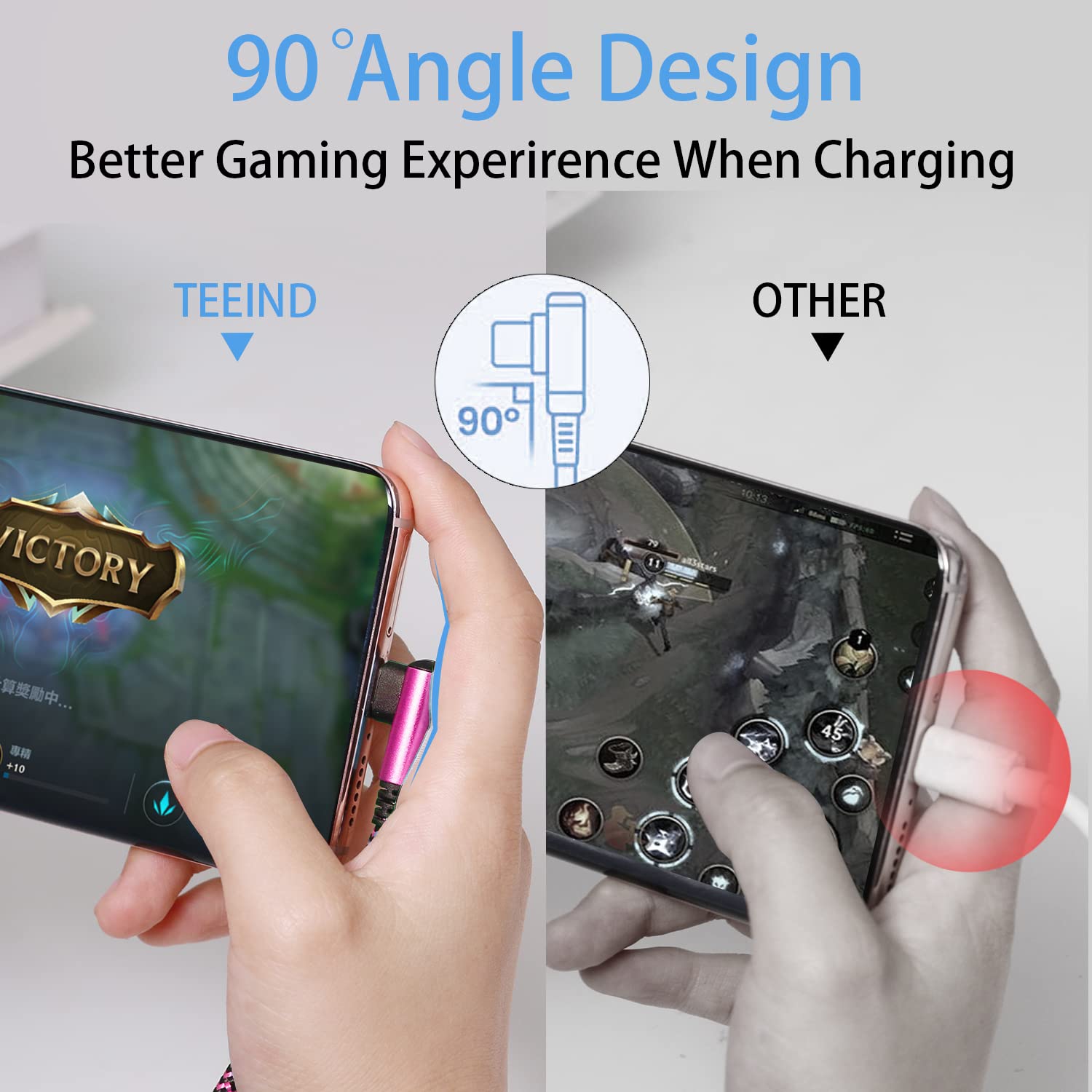 Teeind USB-C-Winkelkabel: [90 Grad/1,8 m/4er-Pack] Nylon-USB-C-Kabel kompatibel mit Samsung Galaxy S10/S10e/9/Note 10, Ladekabel - [Blau/Schwarz/Magenta/Lila]