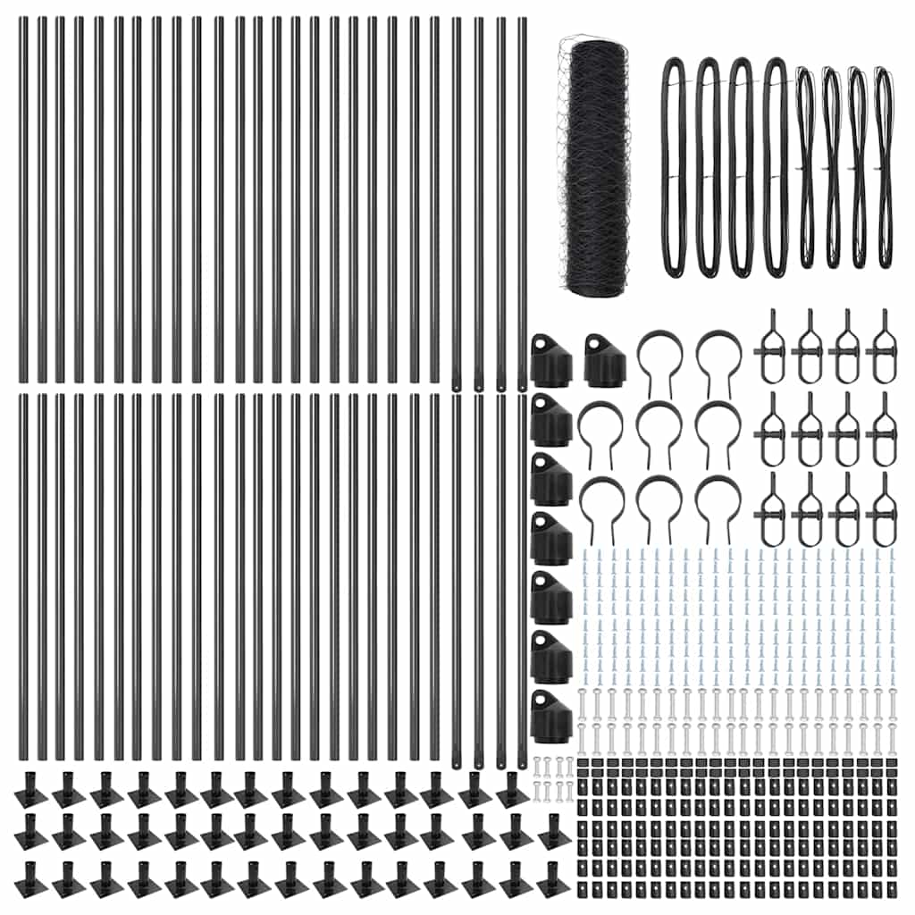 Zaunpfosten Grau 100 x 0,5 m (36 mm Maschenweite) Stahl und PVC