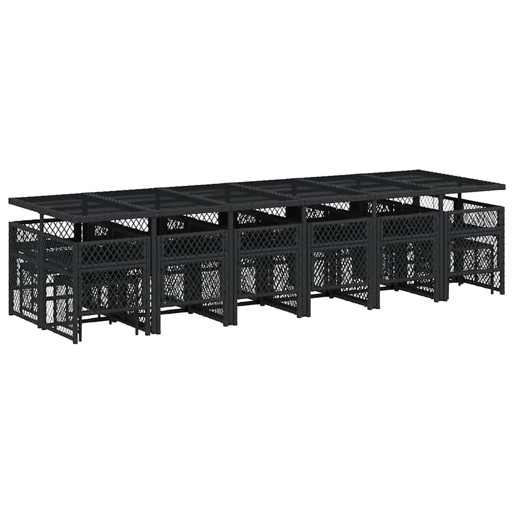 17-tlg. Garten-Essgruppe mit Kissen Schwarz Poly Rattan