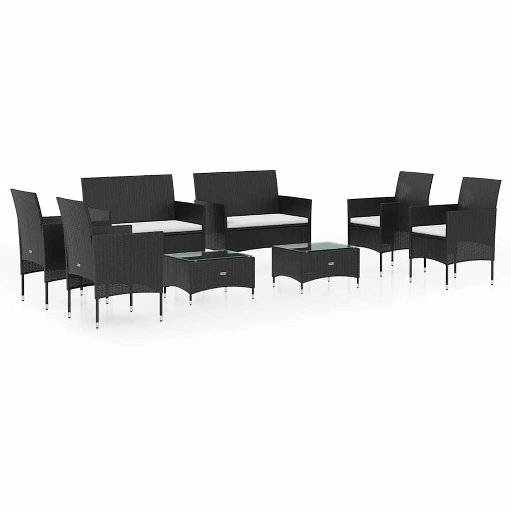 8-tlg. Garten-Lounge-Set mit Auflagen Poly Rattan Schwarz