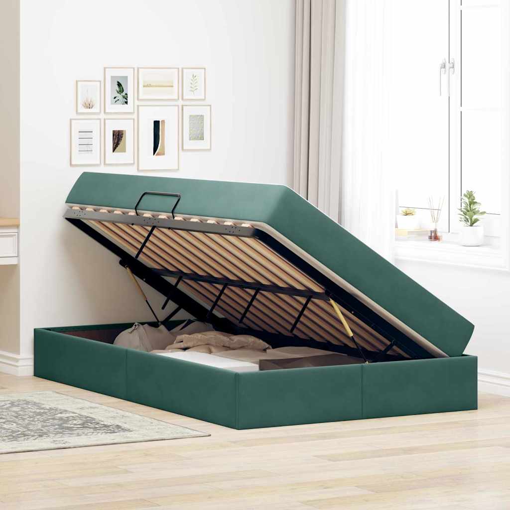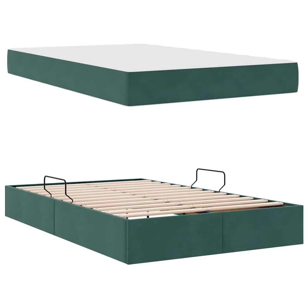Aufbewahrungsbett mit Matratze Dunkelgrün 120 x 200 cm Samt