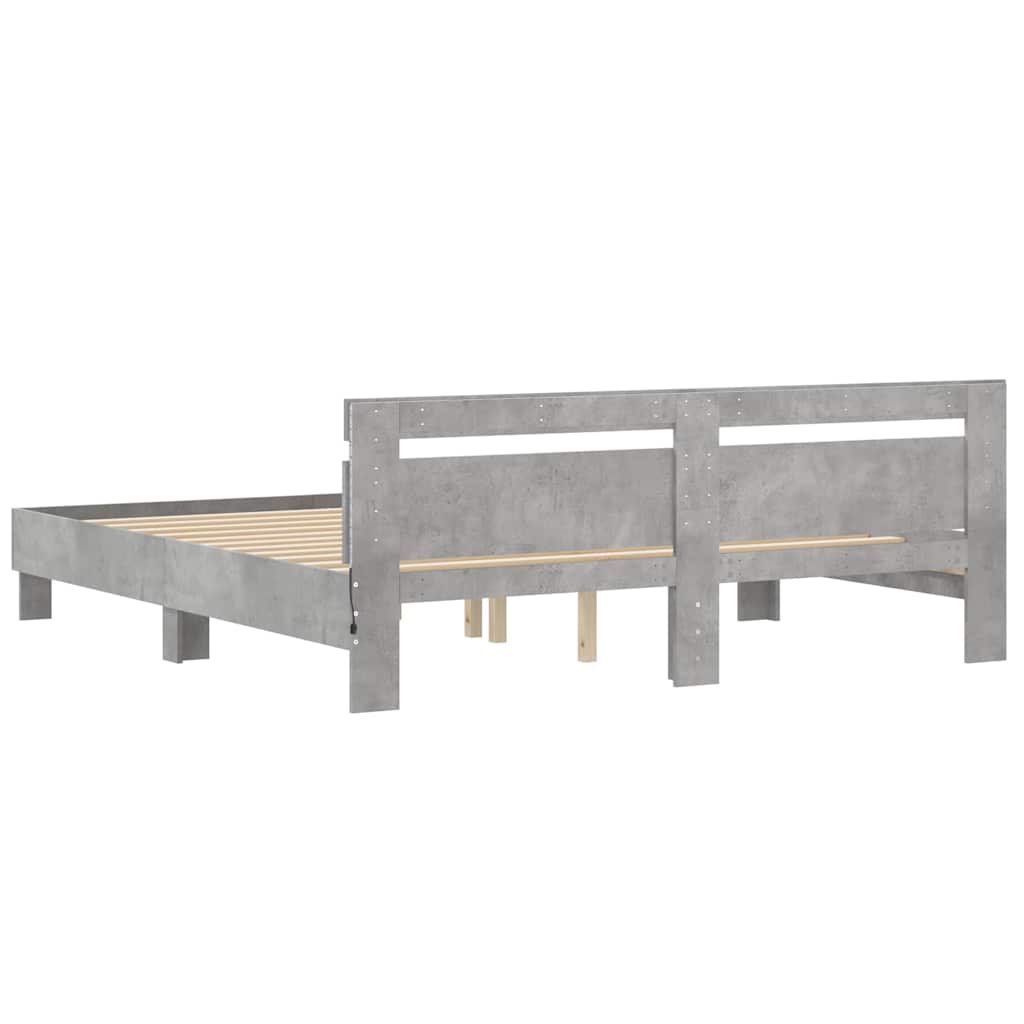 Bettgestell mit Kopfteil und LED-Beleuchtung Betongrau