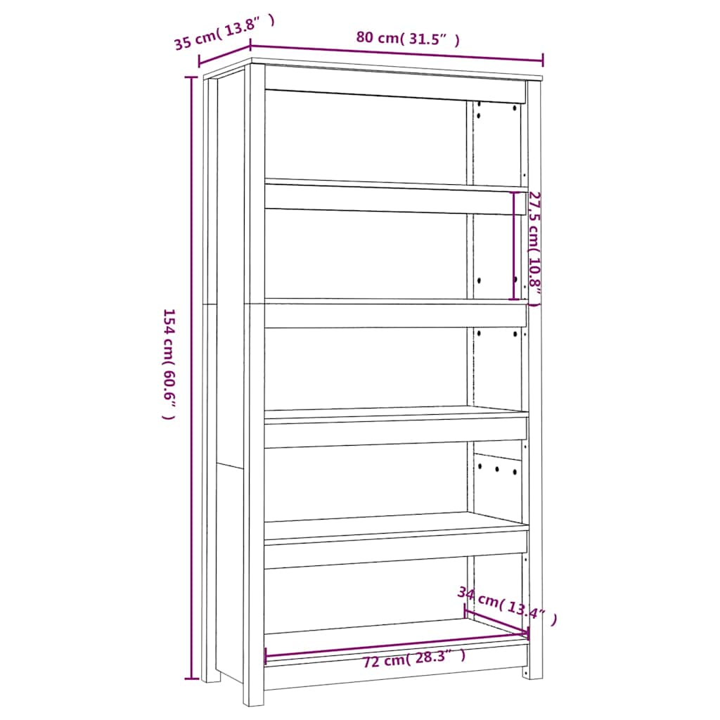 Bücherregal Grau 80x35x154 cm Massivholz Kiefer