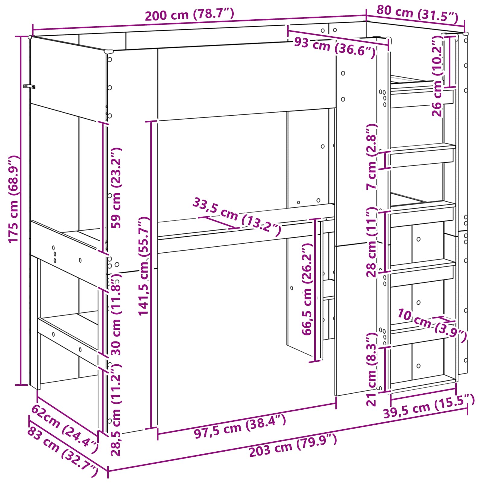 - Gesamtabmessungen: 203 x 93 x 175 cm (L x B x H)