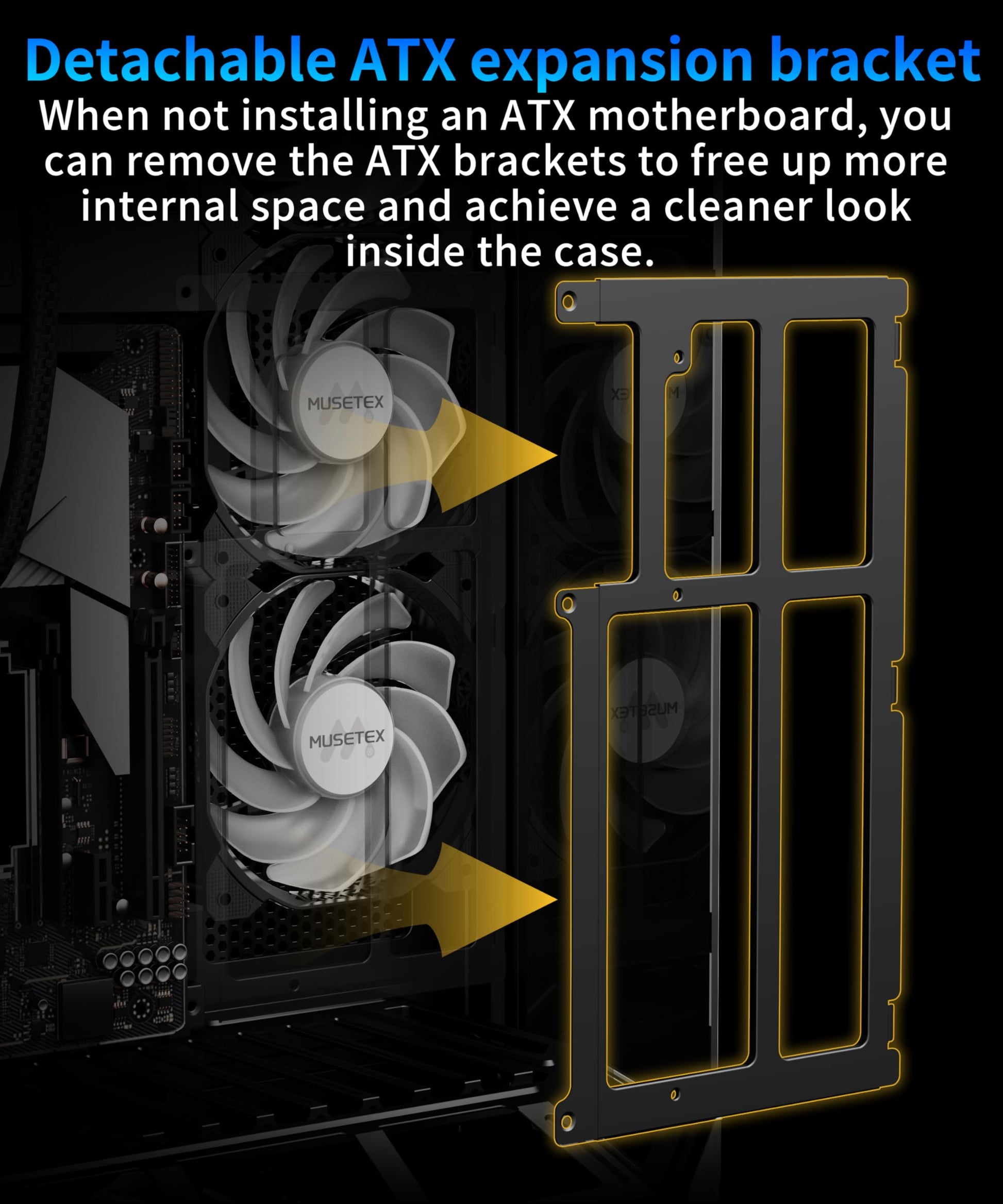 Comprehensive Hardware Compatibility for Flagship Configurations: The case supports oversized graphics cards up to 410mm in length, easily accommodating various flagship models. With a 178mm CPU cooler height limit, it is compatible with high-end air cooling solutions. The power supply compartment fits 140-160mm units, perfectly matching standard ATX power supplies. Motherboard compatibility is versatile, supporting mainstream form factors such as ATX (a dedicated bracket is required for ATX motherboard installation). Ample expansion capabilities include 8 PCIe slots to accommodate multiple graphics or expansion cards, reflecting the expandability expected in a PC case designed for gaming.