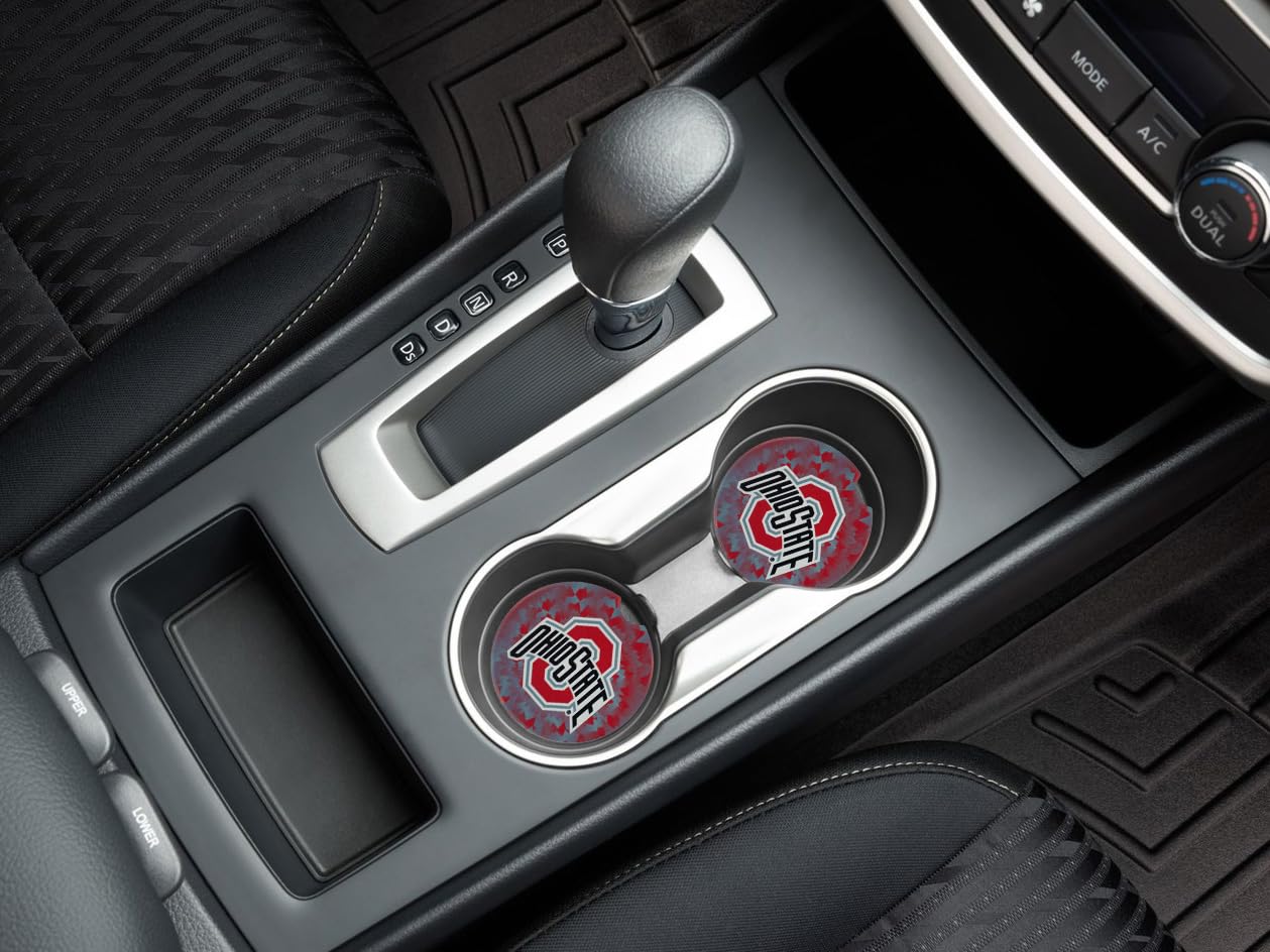 Ohio State Buckeyes University Set of 2 Car Coasters by Magnolia Lane- Removable Absorbent Ceramic Stone Coasters- Ideal Gift for Students, Alumni and Everyday Fan- Show Your Big 10 NCAA Team Spirit