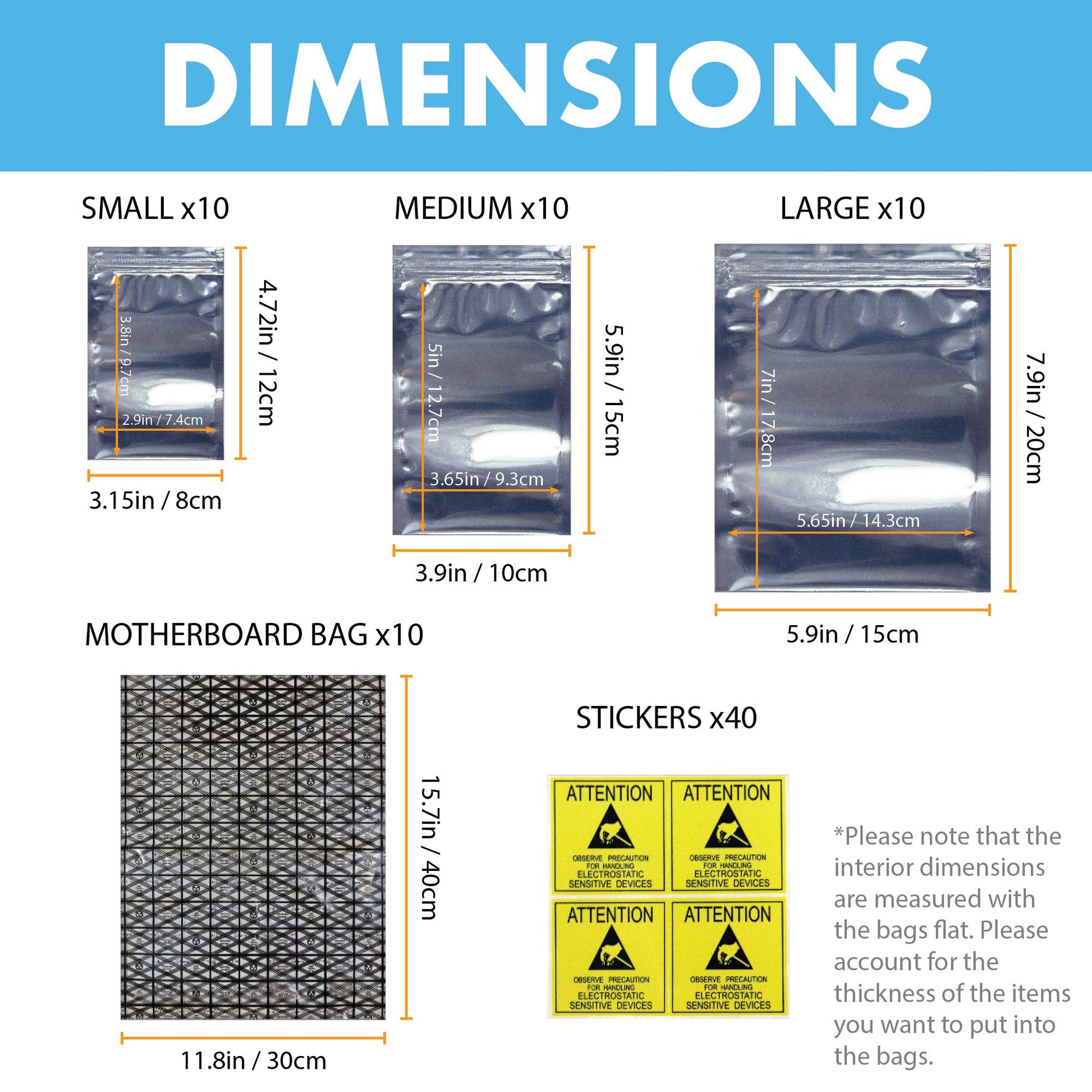 Open Top & Resealable Antistatic Bags ESD Shielding Bag with Anti-static Labels for Hard Drive SSD HDD Motherboard Video Card RAM Electronic Devices (Pack of 40) (Assorted Sizes)
