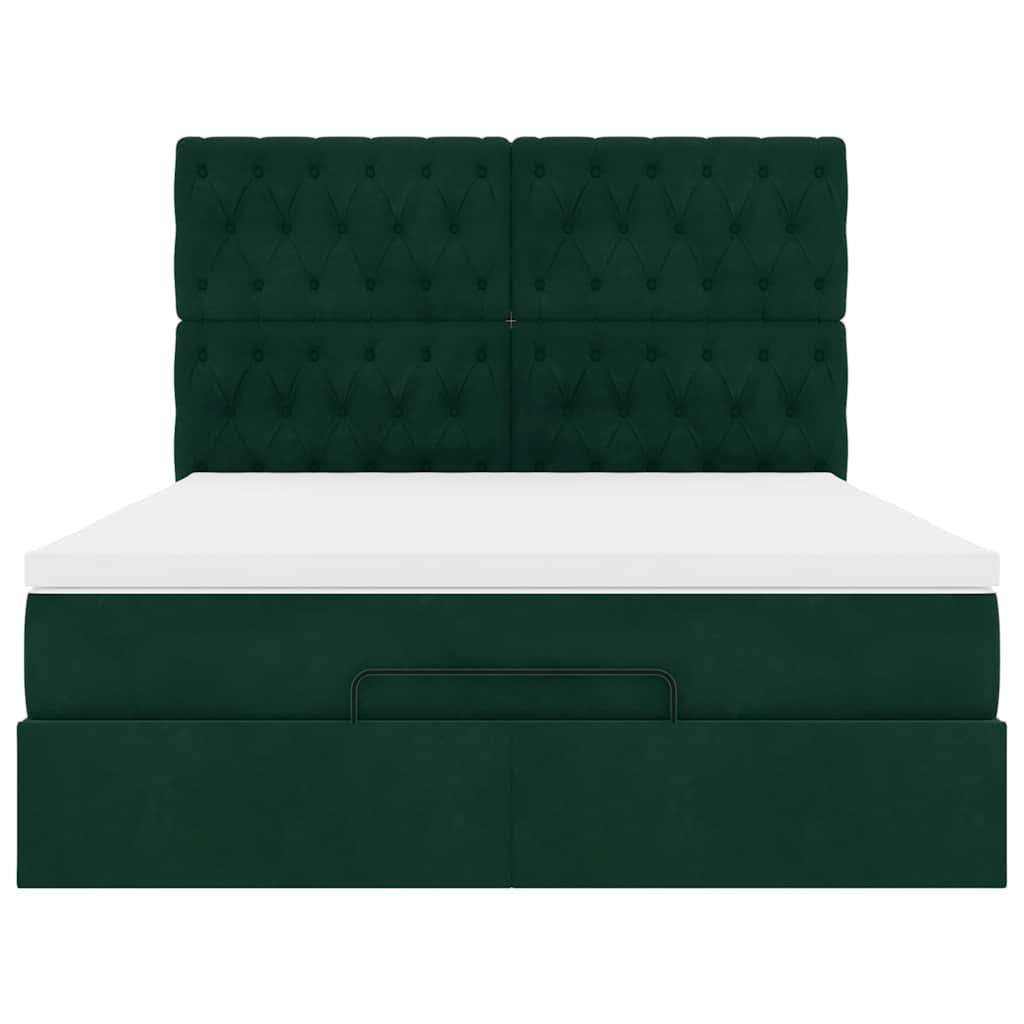 Ottoman-Bett mit Matratzen Dunkelgrün 140x190 cm Samt