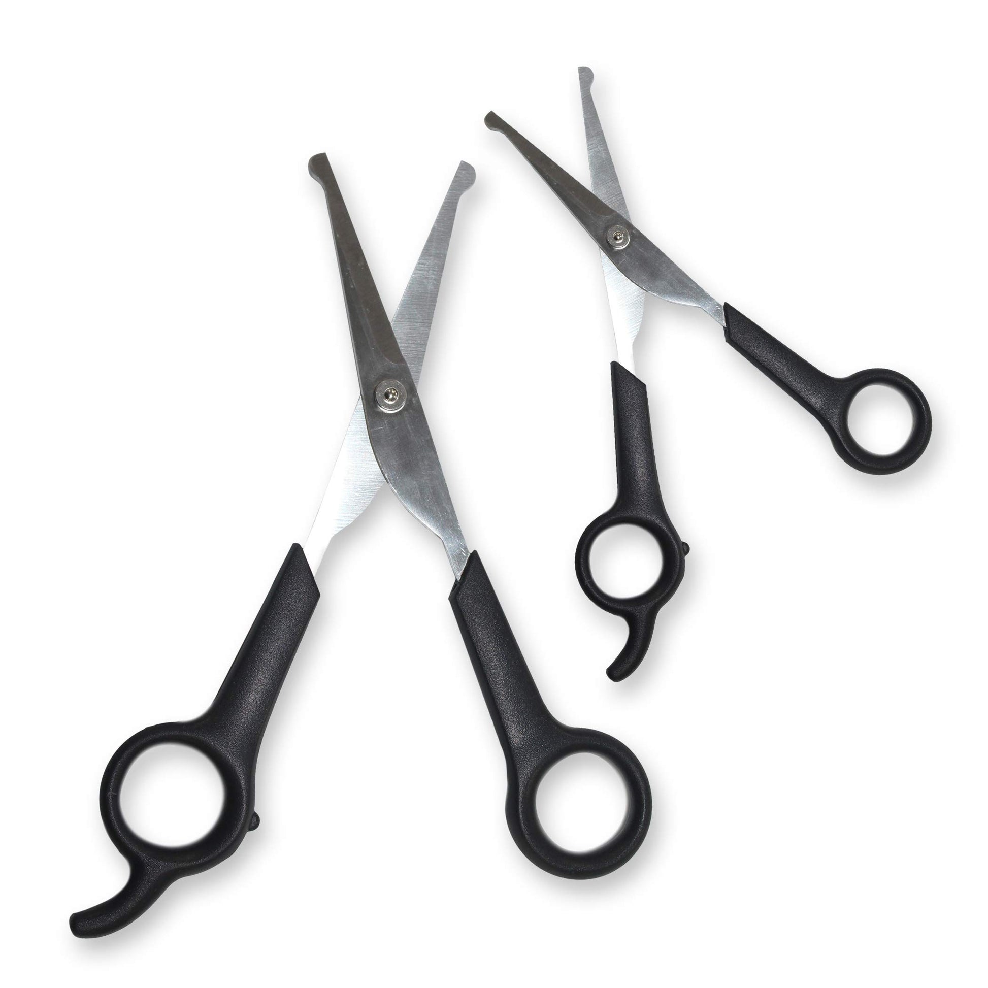Pets First #1 Pet Grooming Scissors Body & Facial Trimmer Durable Stainless Steel Blades. Rounded Tips Shears for Long Medium Short Thick Wiry Curly Hair. Lightweight Cutter for Dogs & Cats. Set of 2