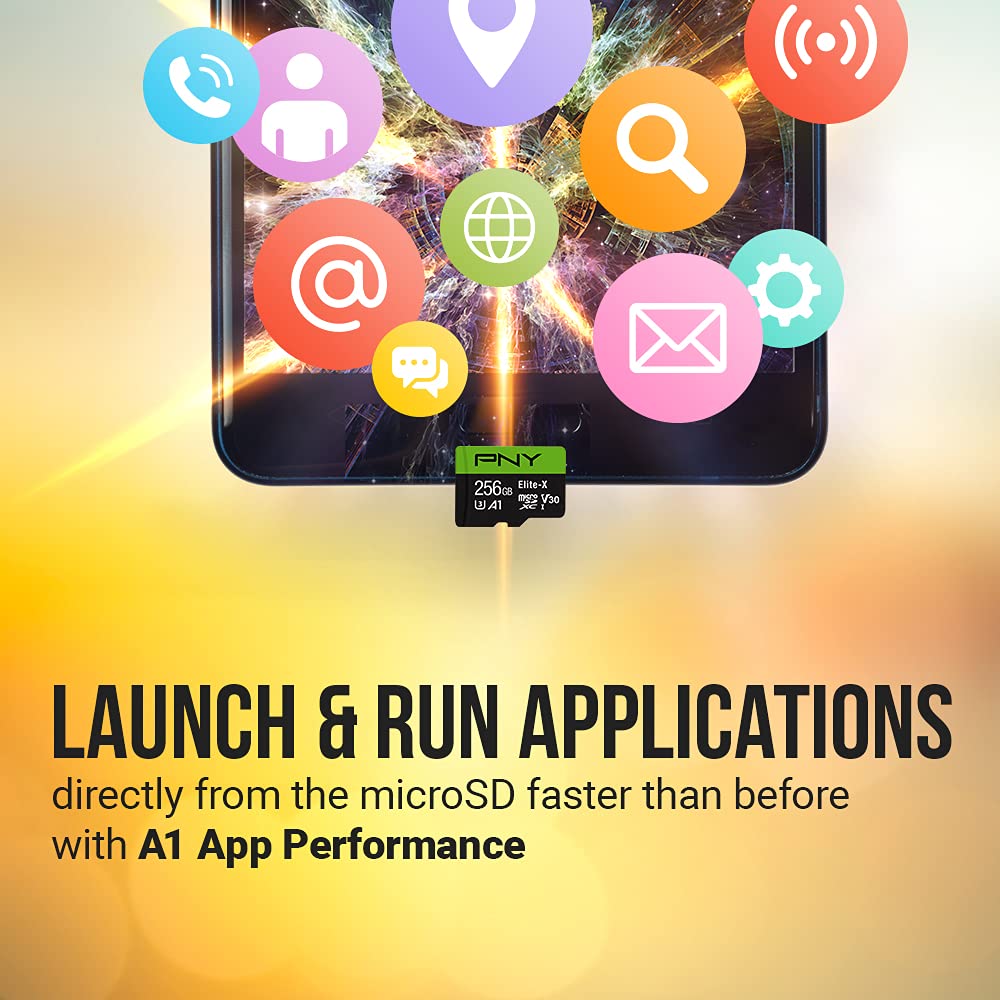 The PNY Elite-X Class 10 U3 V30 microSD Flash Memory Cards are the perfect solution by which to expand on-board memory of mobile devices such as smartphones, tablets, action cameras, drones, and more, allowing users to free up space to enjoy more digital content. The Elite-X microSD Flash Memory Cards are rated Class 10, U3, V30, with read speeds of up to 100MB/s, guaranteeing that users can not only quickly and easily store and share content between devices, but also engage in HD photography and 4K Ultra HD Videography by leveraging the U3 technology. What’s more, the Elite-X microSD Flash Memory Cards feature V30 Video Speed Class, ideal for 4K Ultra HD video at 4096x3072 format, allowing users to capture high quality content on their mobile devices. Rated A1, the PNY Elite-X is optimized for app performance, allows users to run apps directly from the microSD card, delivering faster app launch and performance than ever before.