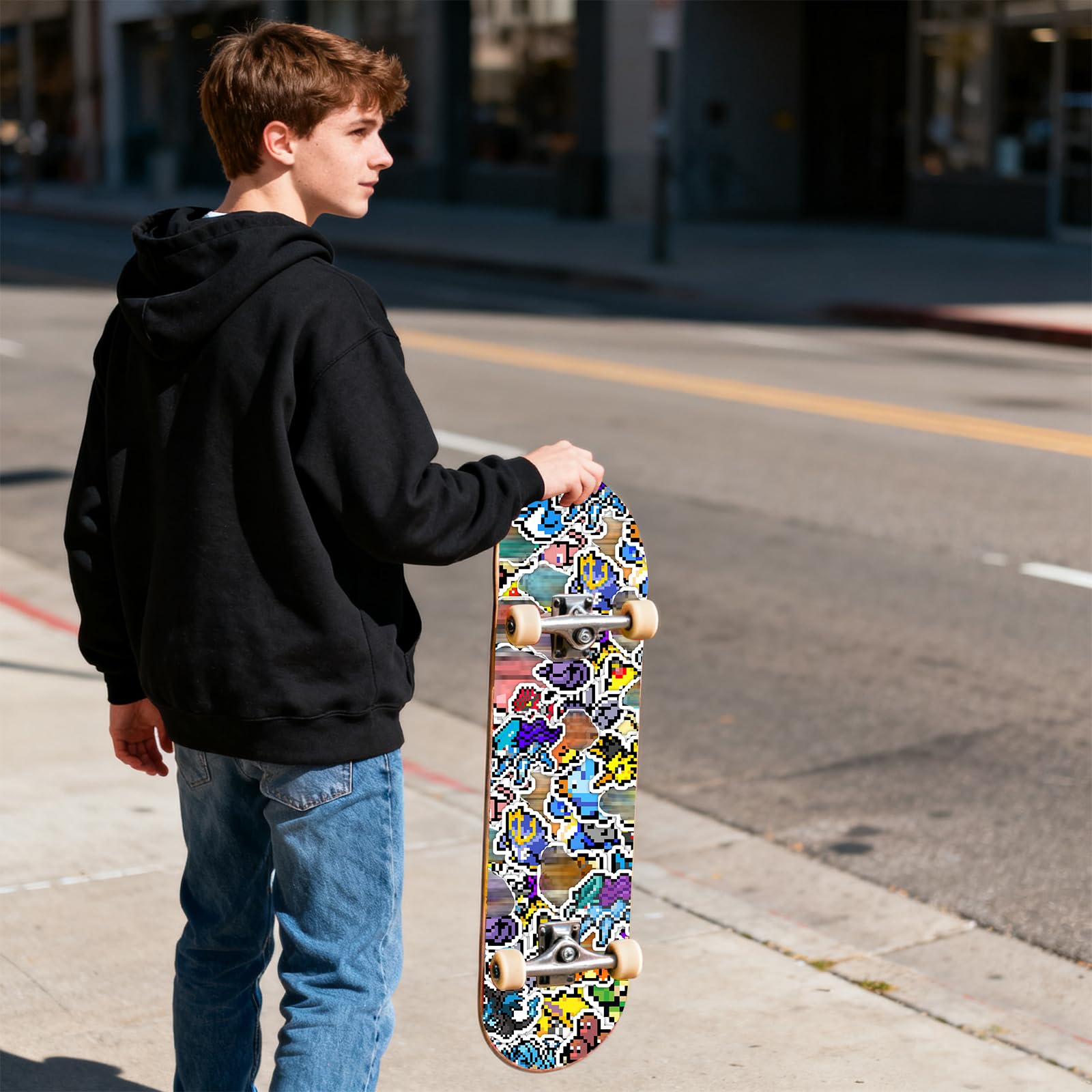 Pounchi Retro Pixel Anime Stickers (50Pcs Large Size) Aesthetic Cartoon PVC Sticker, Gifts for Laptop Water Bottle Skateboard Party Supplies Decorations Teens