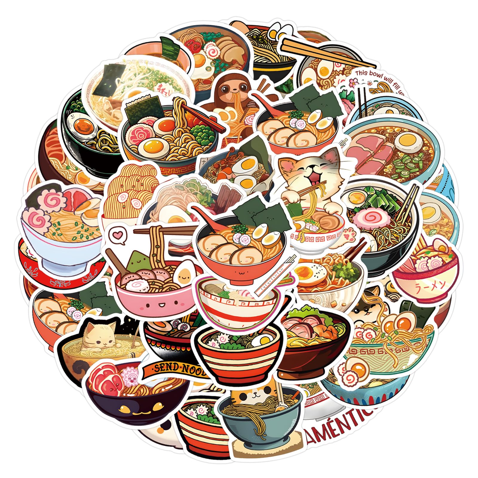 Ramen Stickers for Water Bottle and Laptop 55PCS Yummy Japanese Food Stickers, Foodie Party Favors & Decorations, Waterproof Vinyl Noodle Decals, Cute Ramen Stickers Laptop Decals