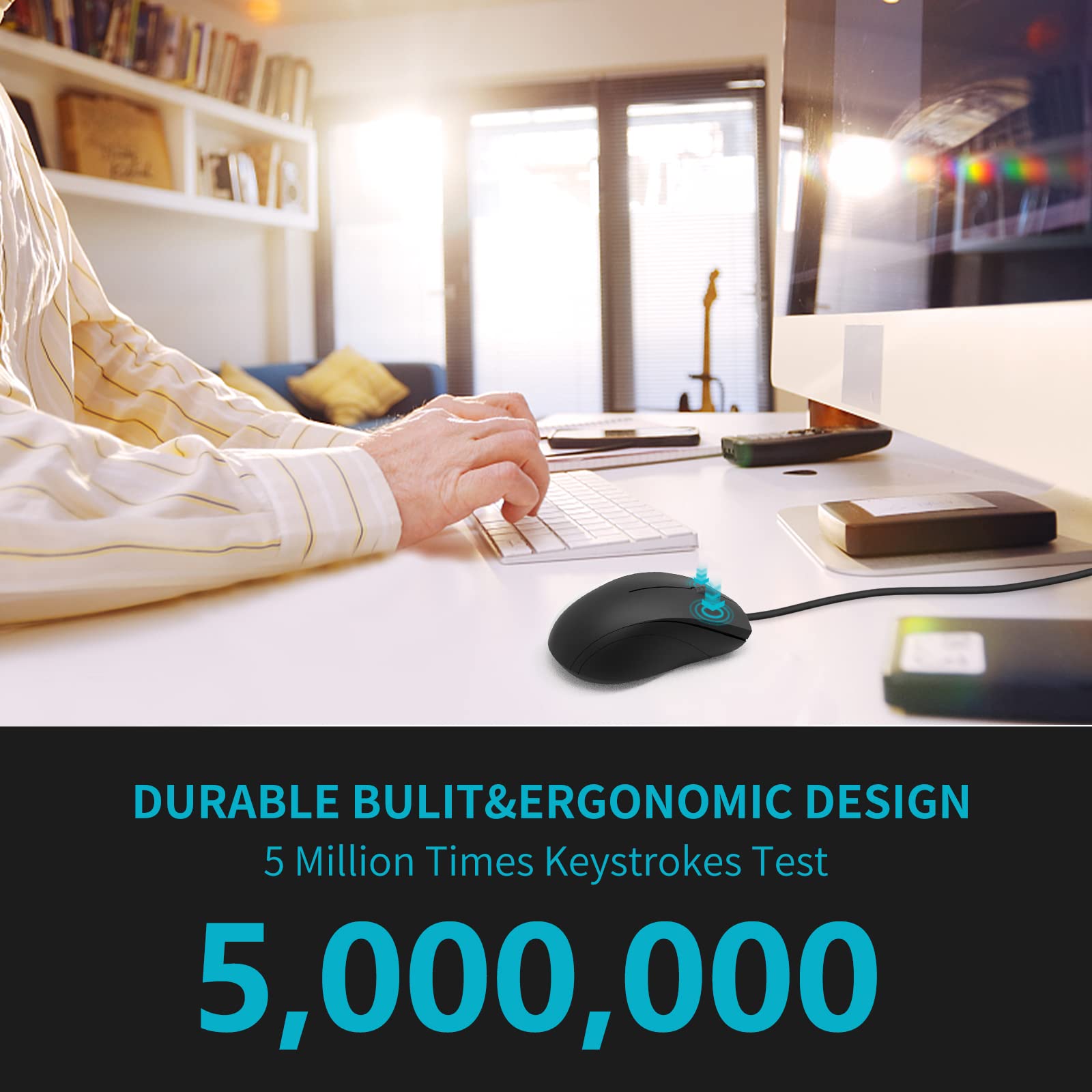 Rapoo Silent Wired Mouse, 1000 DPI 5ft Cord Quiet Button Optical Computer Mouse, Left Right Hand Use, for Laptop Chromebook Mac Notebook, Matte Black