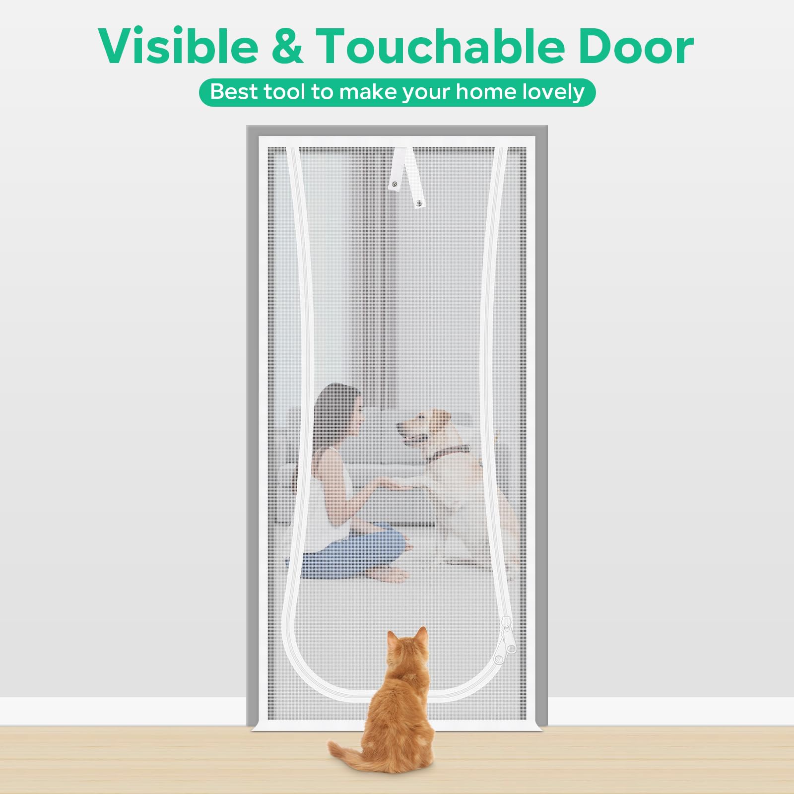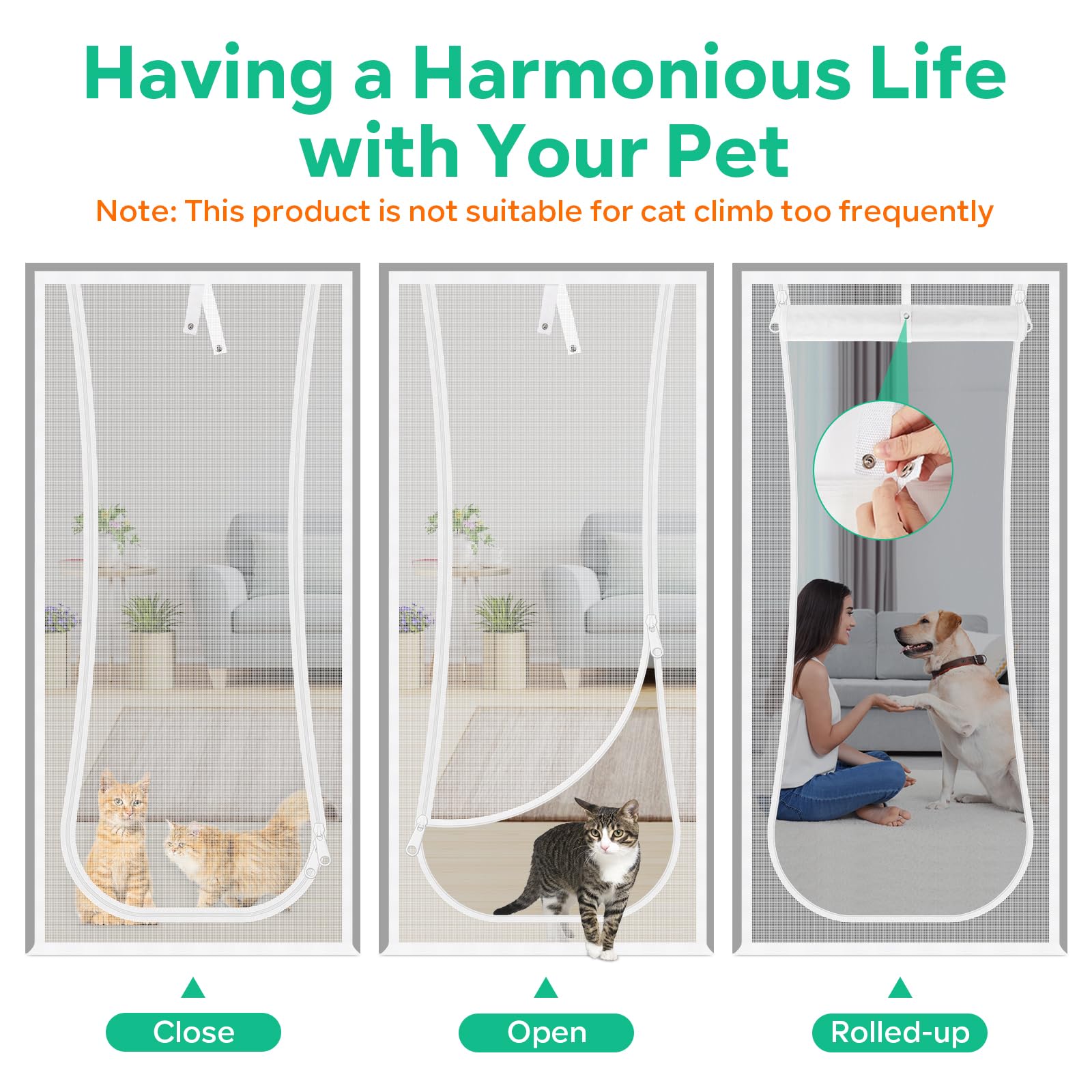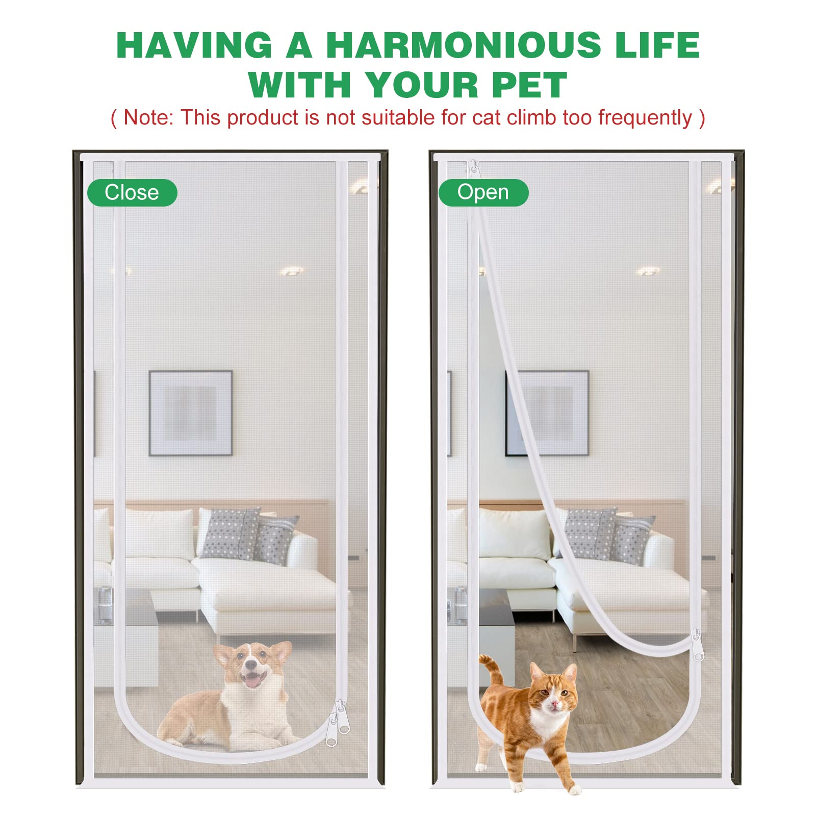 Reinforced Cat Screen Door, 35.5X82” Heavy Duty Pets Proof Screen Door with Bilateral Zipper, Prevent Dogs Cats Running Out from Home, Bedroom, Living Room, Kitchen Patio Doo