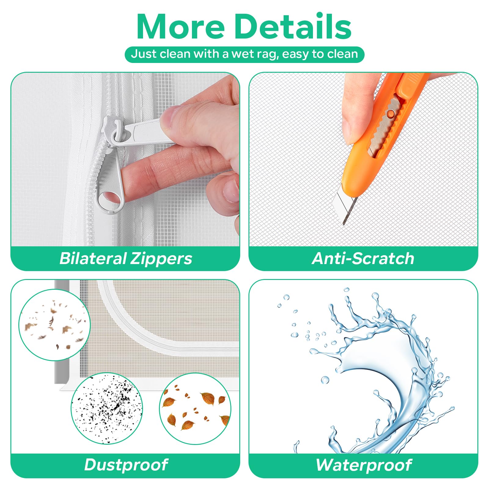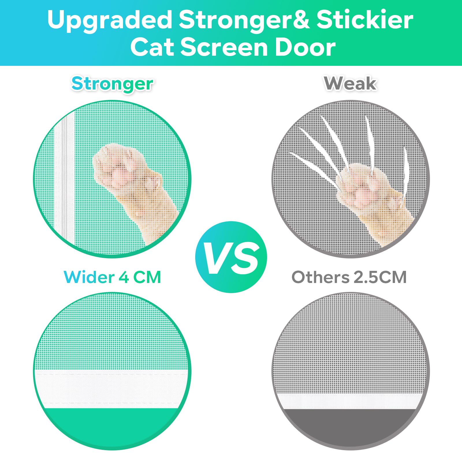 • 【Reinforced Robust Alloy Steel Material】 Our cat resistant door screen made of Alloy Steel is stronger and more robust than ordinary glass fiber materials, and can withstand the scratching of cat's claws without breaking. In addition, its material is soft and can be easily rubbed and cleaned for repeated use.