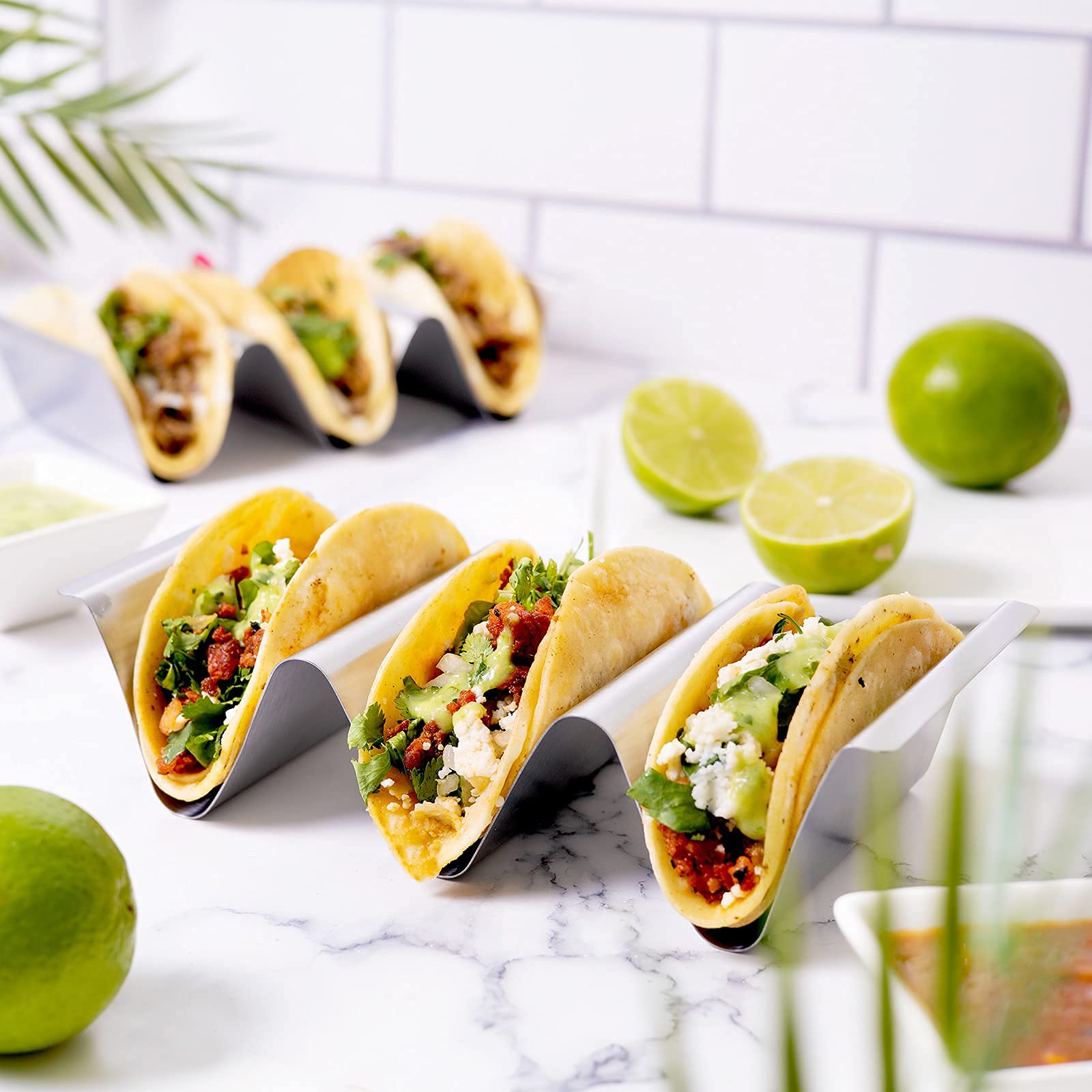 Stainless Steel Taco Holder Stand, Set of 6 - Stylish Rack Holds Up to 3 Tacos Each, Keeping Shells Upright - Oven, Grill and Dishwasher Safe