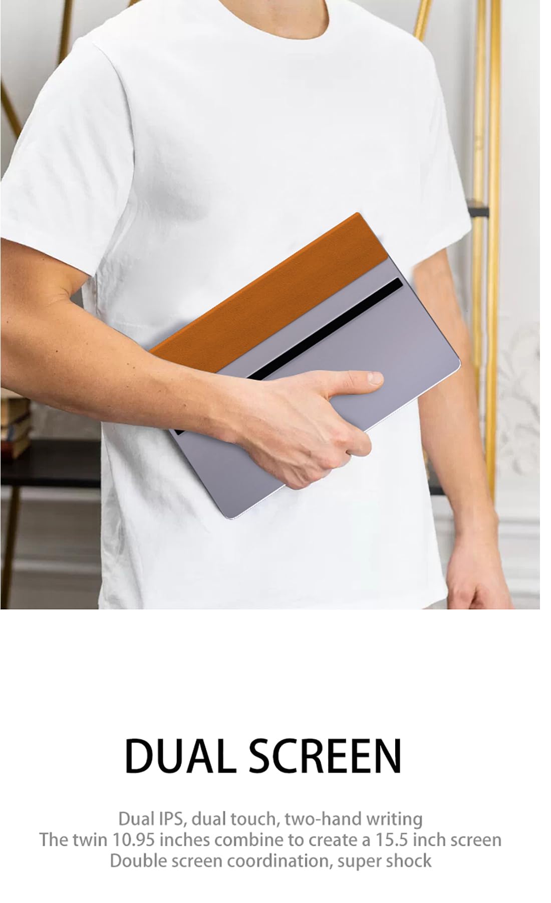 Ruchonin 2-in-1 10.95" 2.5K Dual Screen Touch Laptop CPU Core i3-1215U Win 11 Home 32GB RAM 1TB SSD (Orange)