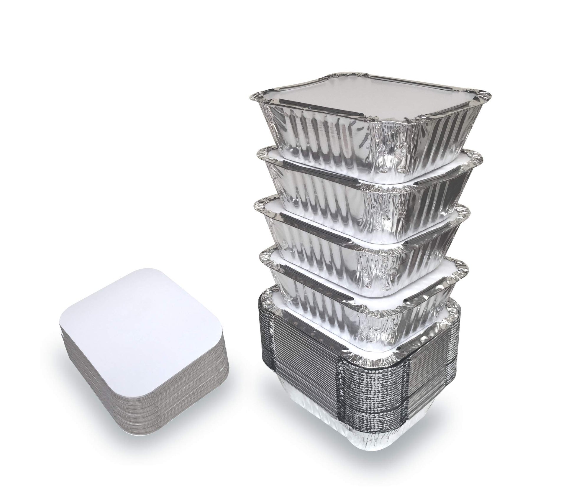Spare Essentials 55 Pack - Small Foil Pans with Lids - To Go Food Containers with Lids 1lb Mini Aluminum Pans Freezer Safe Foil Take out Trays Heat proof Aluminum Meal Prep Containers 5.5x4.5x1.9 in