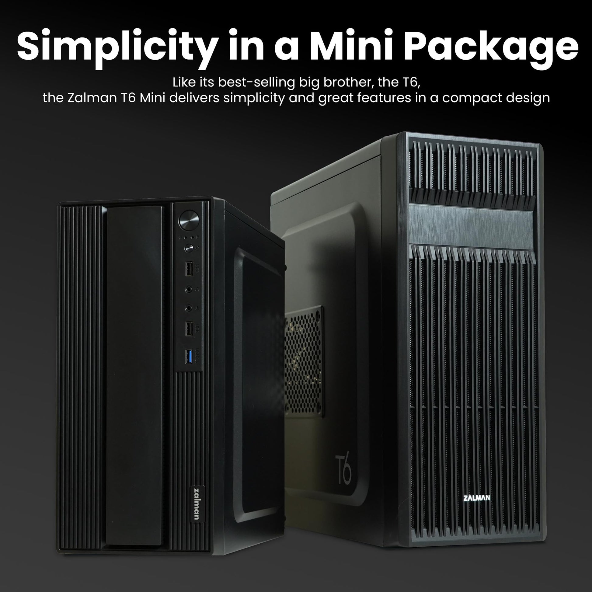 The Zalman T6 Mini is a compact, space-saving mini tower PC case supporting mATX/Mini-ITX motherboards, featuring a preinstalled 80mm fan, USB 3.0 connectivity, and a sleek, minimalist design.