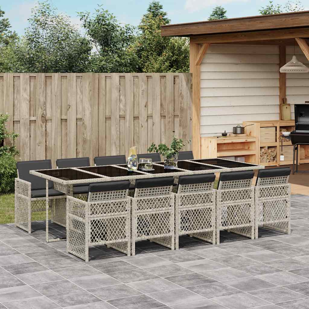 11-tlg. Garten-Essgruppe mit Kissen Hellgrau Poly Rattan