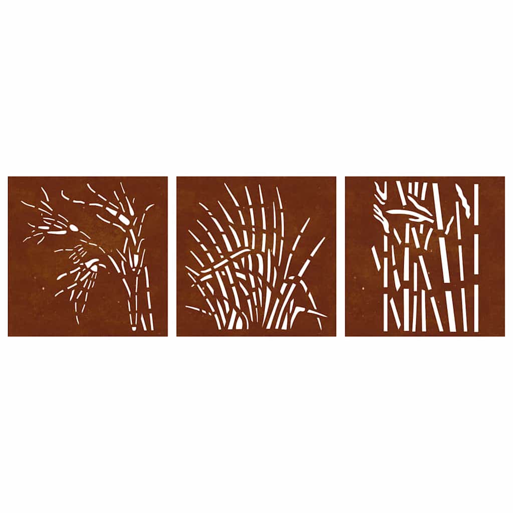 3-tlg. Garten-Wanddeko 55x55 cm Cortenstahl Gras-Design