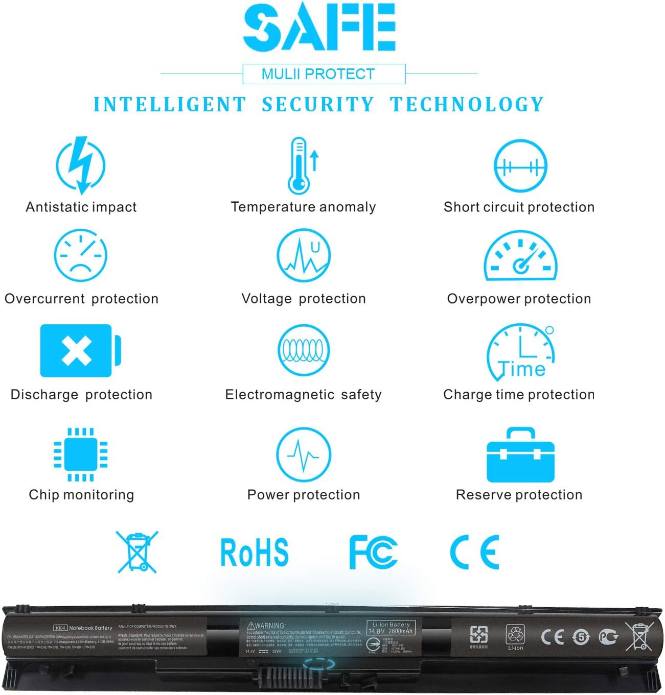 - SPECIFICATION : Model Name:KI04 Notebook Battery; Battery Type: Li-ion; Voltage :14.8V(Compatible with 15.2V/14.6V/14.4V); Capacity : 38Wh/about 2600mAh; Cells: 4-cell; Size: About 10.76*1.25*0.8inch; Weight: About 9oz / 0.56lb;