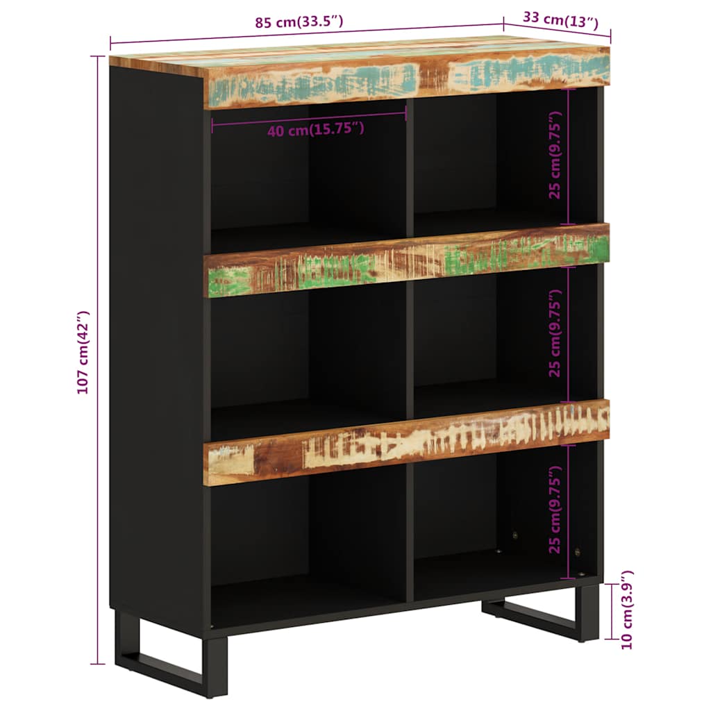 - Material: Recyceltes Massivholz mit gemischter Farbgebung, Eisen