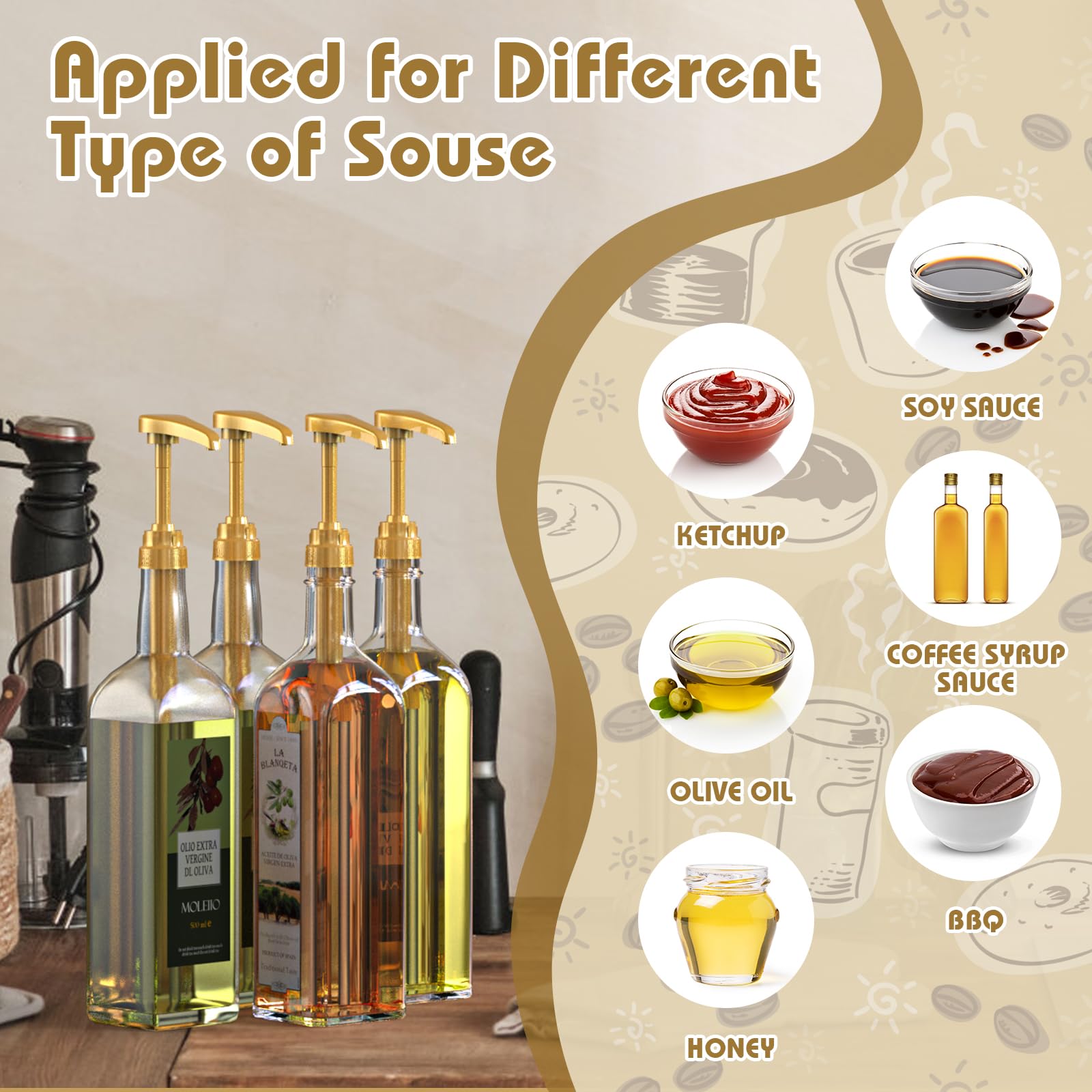 Neosoge Coffee Syrup Pump Dispenser, 4 Packs of Syrup Pump for 750ml/25.4 oz Syrup Bottle, Gold Pumps for Coffee Syrup Bottle, works with Torani, DaVinci, Jordans Skinny 750ml Syrups Bottles (Gold)
