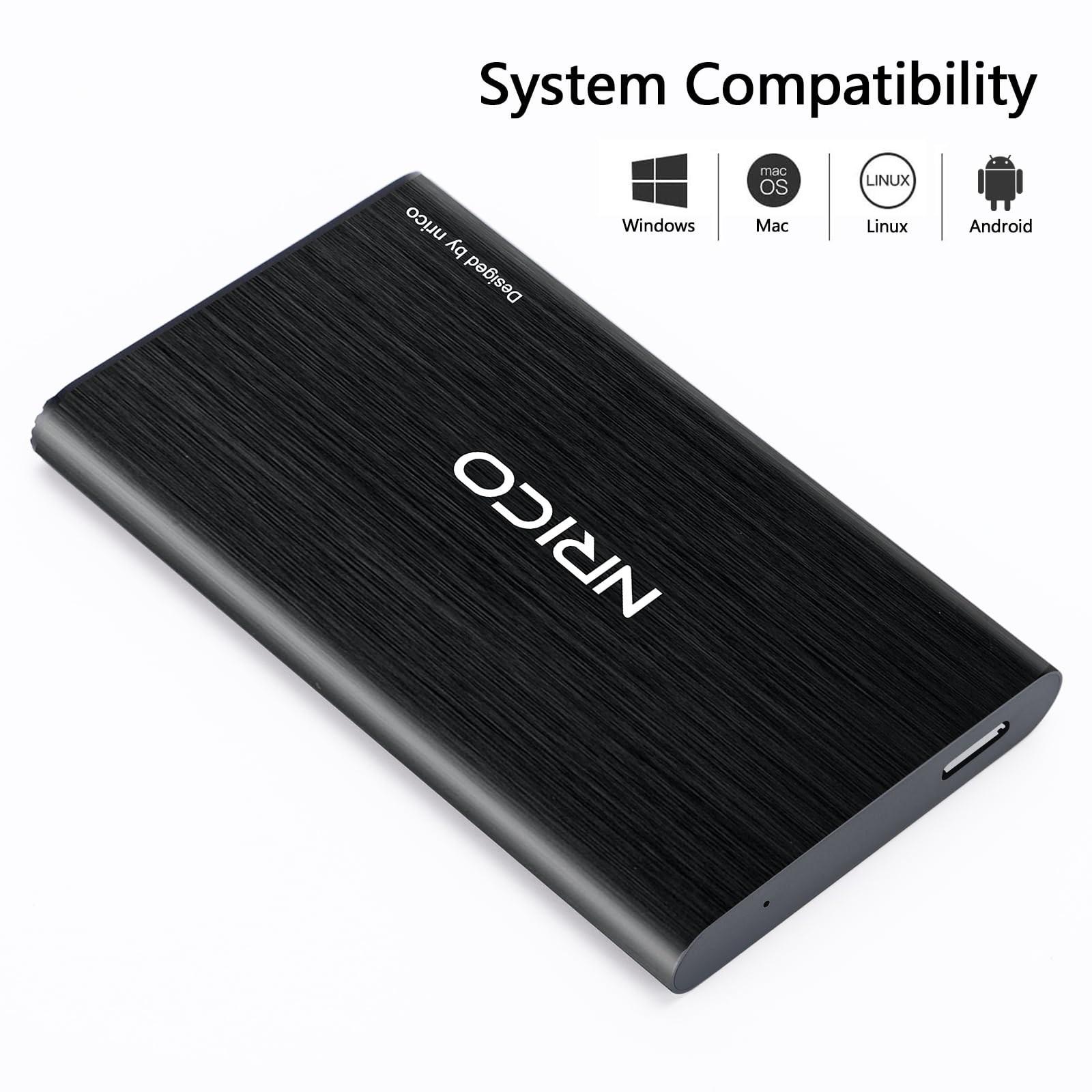 NRICO Ultra Slim 500GB Portable External Hard Drive USB3.0 HDD Storage Compatible for PC, Desktop, Laptop,Mac,PS4, Xbox one (Black, 500, GB)