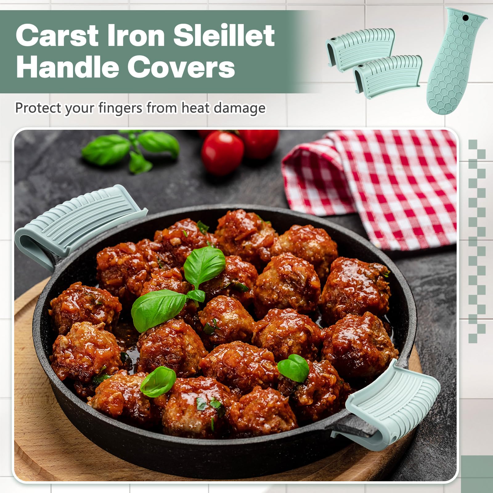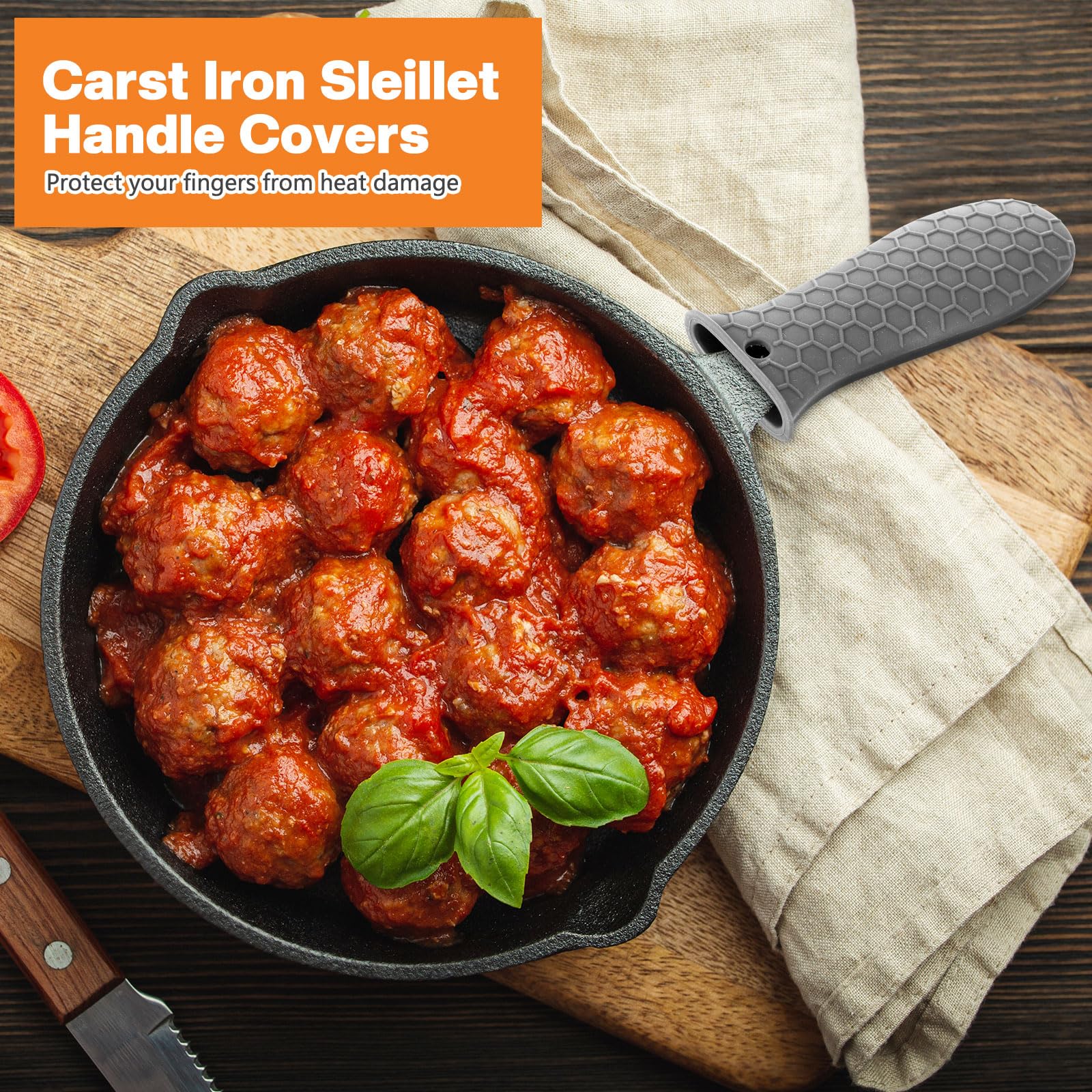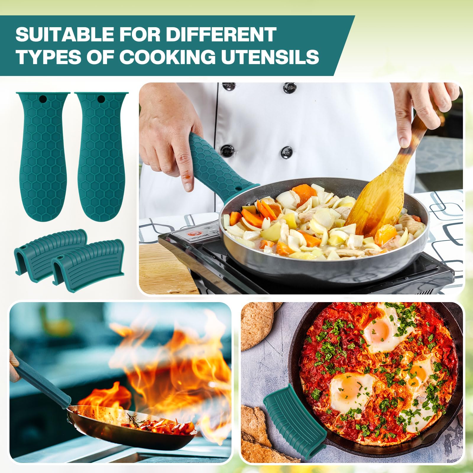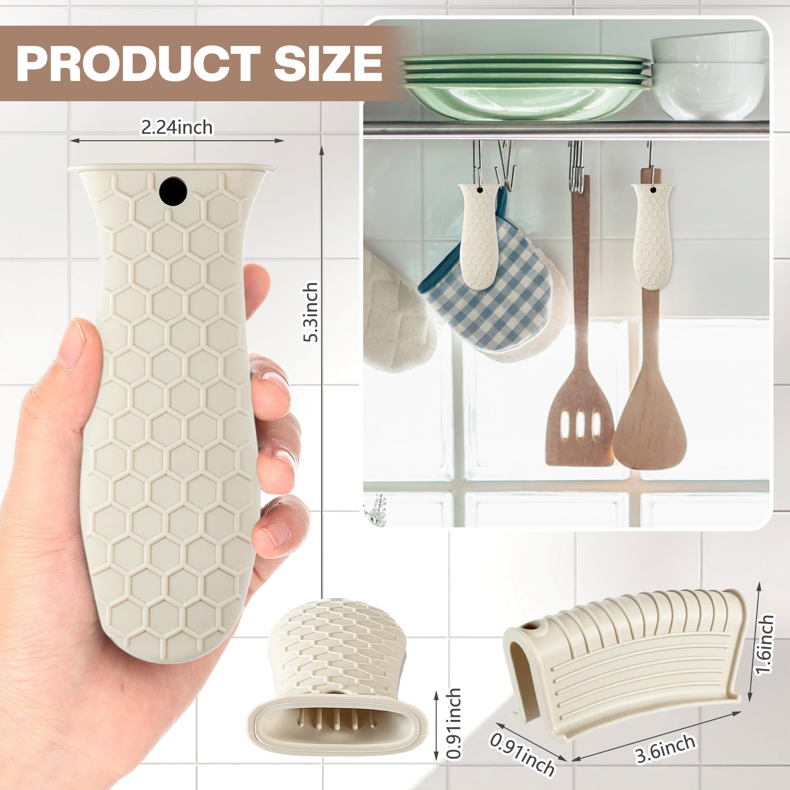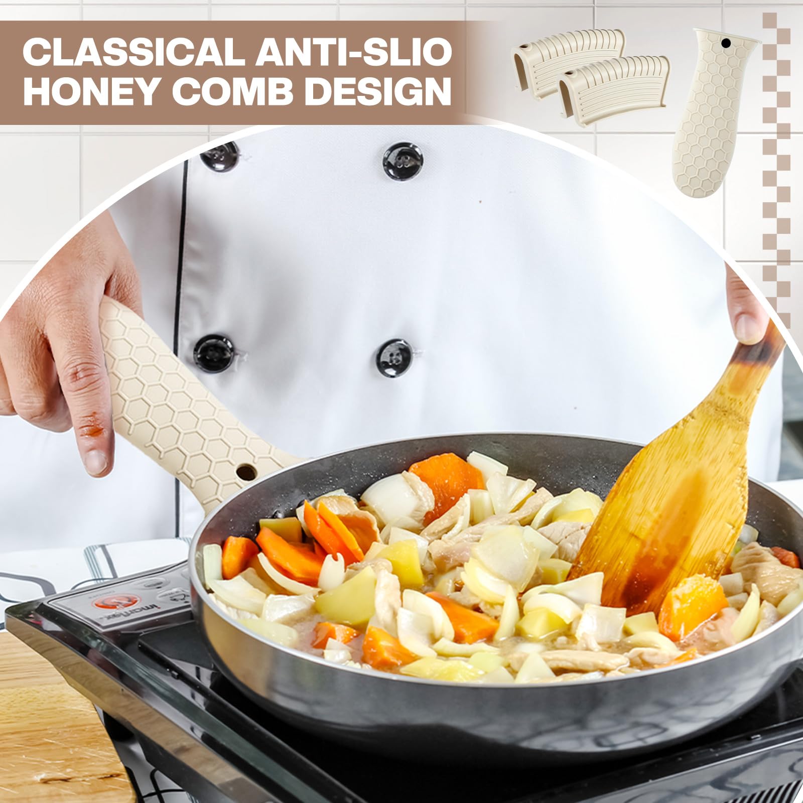 • Anti-slip design: these hot resistant pot sleeve grip handle holders feature honeycomb pattern design on the outside and concave-convex design on the inside to make the handle holder grip stronger and less slippery; The silicone hot skillet handle cover has a handy hanging hole if you prefer to store on a hook, making cooking, baking, etc. in your kitchen easier and fun