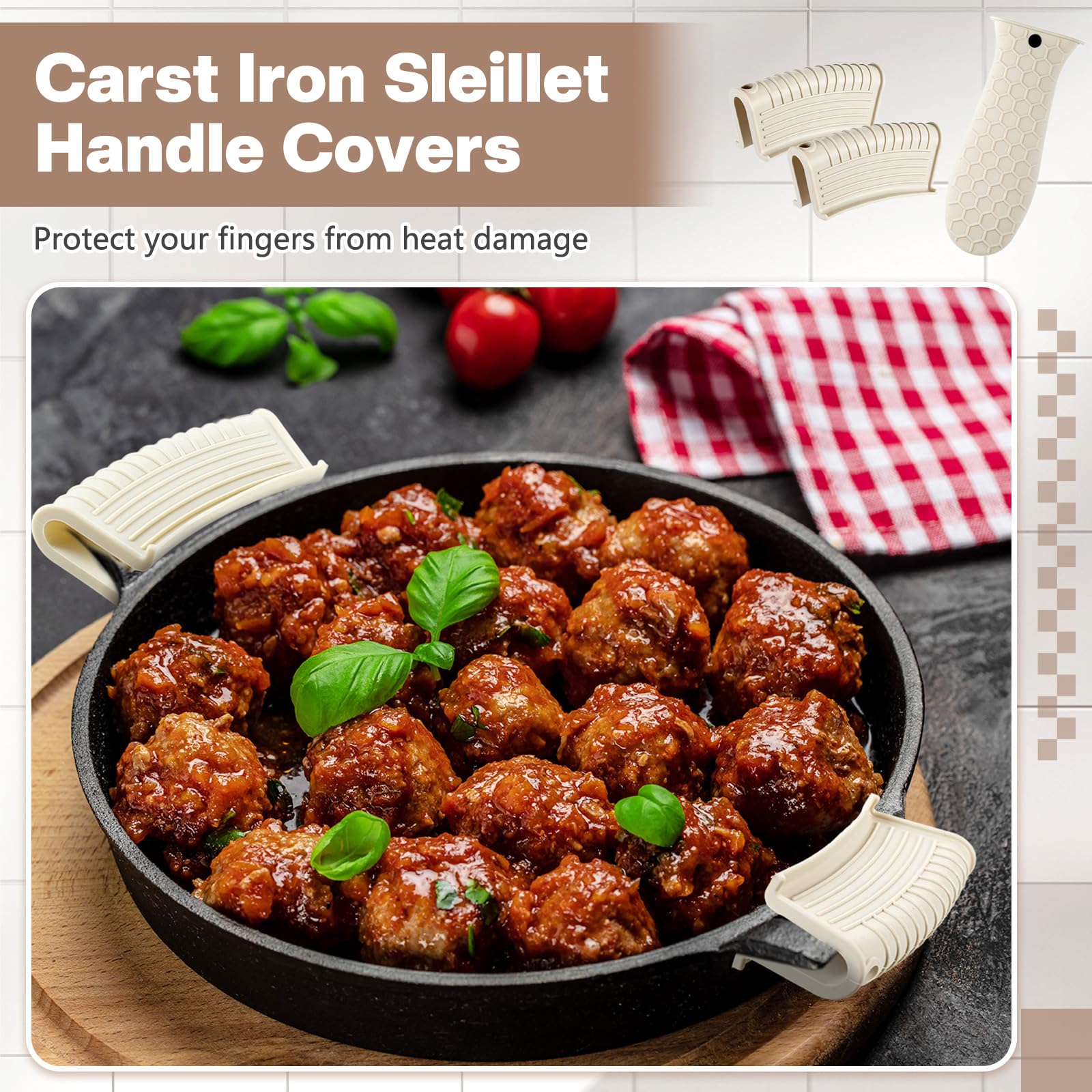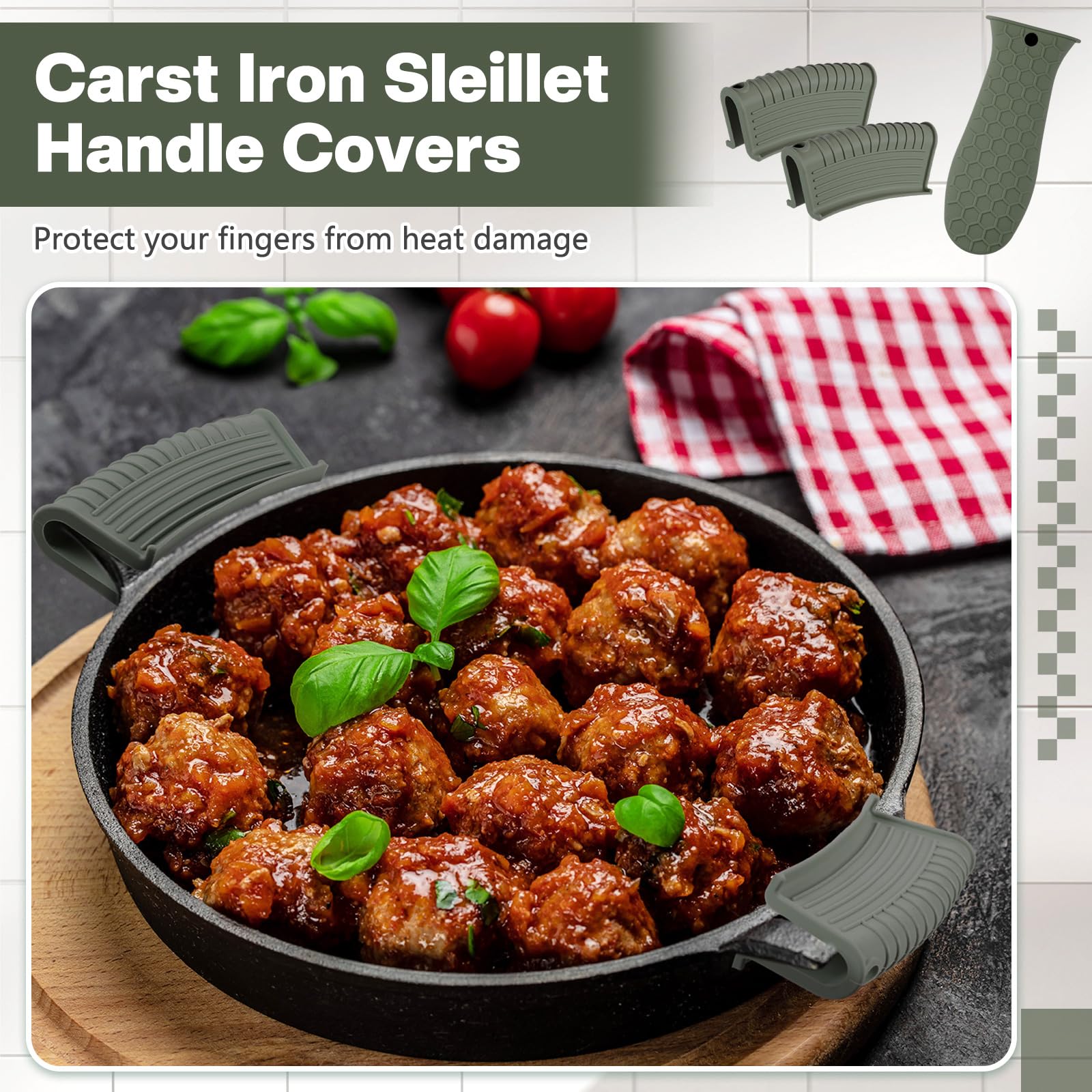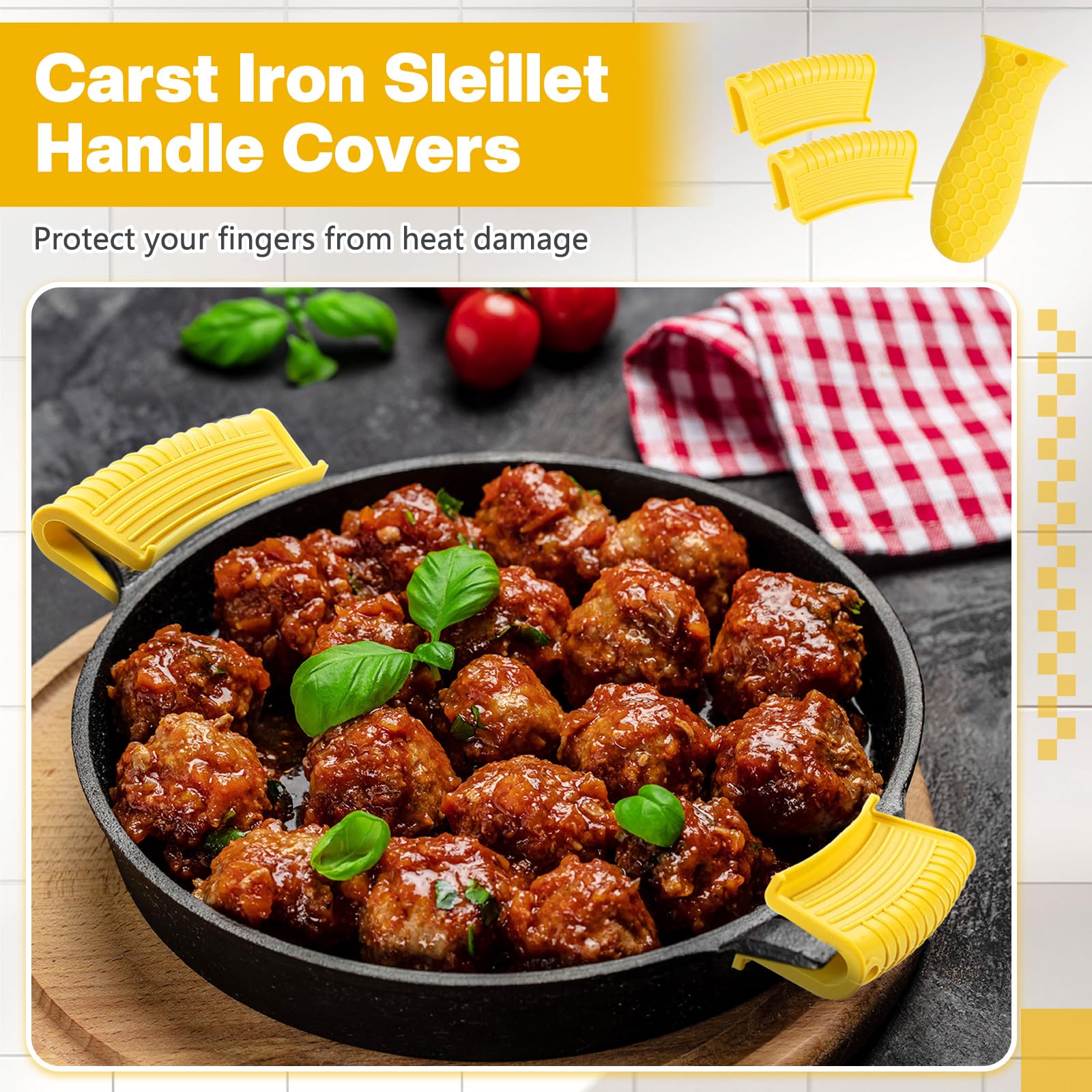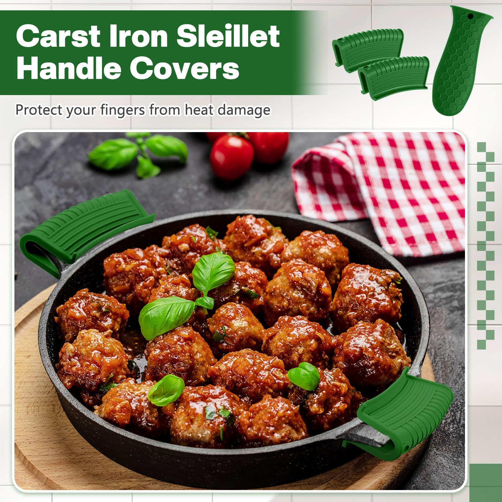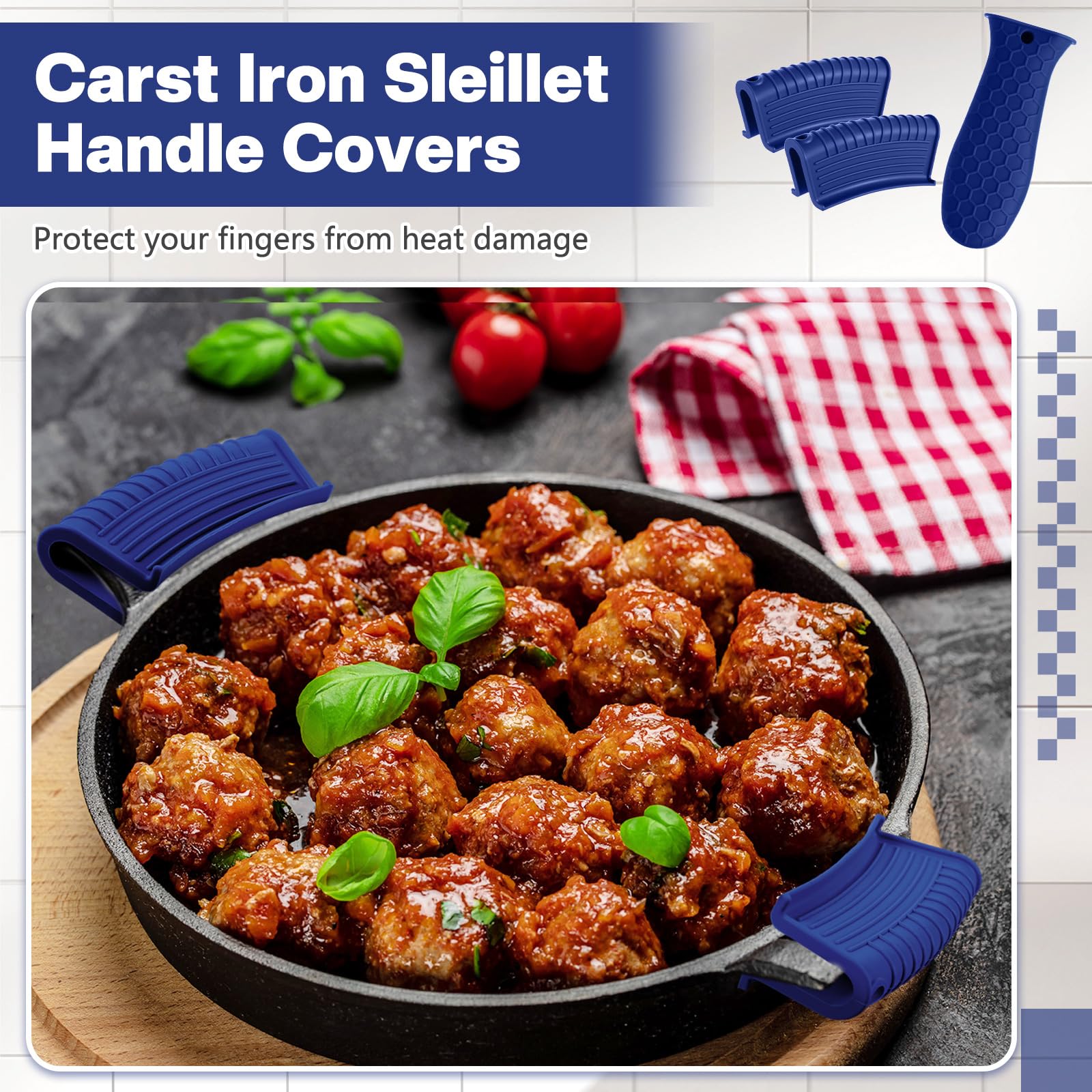 • Anti-slip design: these hot resistant pot sleeve grip handle holders feature honeycomb pattern design on the outside and concave-convex design on the inside to make the handle holder grip stronger and less slippery; The silicone hot skillet handle cover has a handy hanging hole if you prefer to store on a hook, making cooking, baking, etc. in your kitchen easier and fun