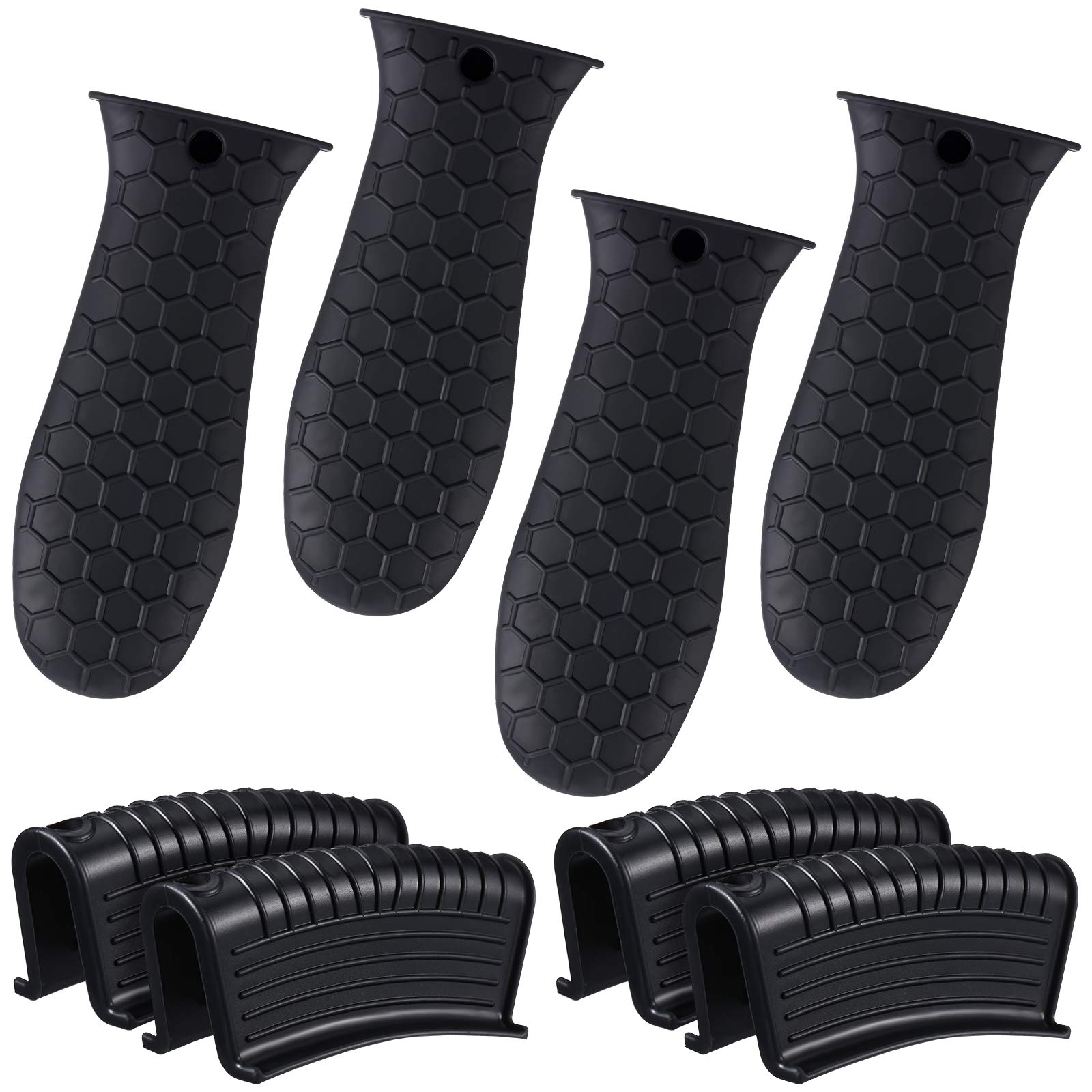 Patelai 8 Pcs Silicone Pot Holders Set Cast Iron Handle Cover Heat Resistant Pot Handle Covers Potholder Non Slip Reusable Pan Sleeve for Frying Pan Kitchen Supplies(Black)