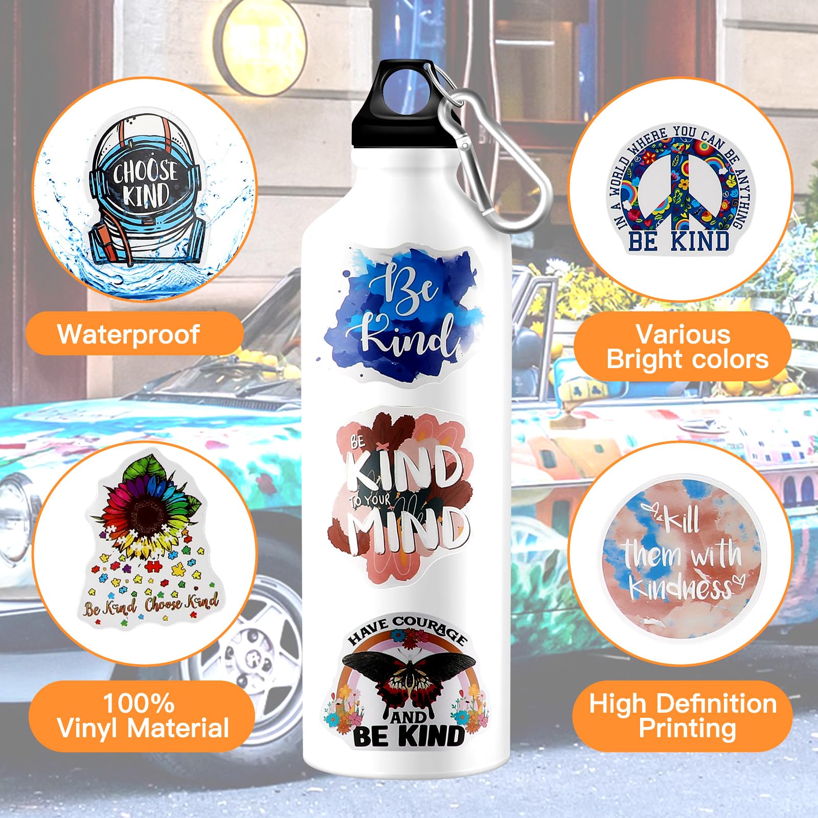 Sayglossy 500 Pcs Kindness Stickers Bulk Vinyl Be Kind Stickers Water Bottle Kindness Decals Waterproof Physical Therapy Motivational Encouraging Decals for Teens Adults Teacher