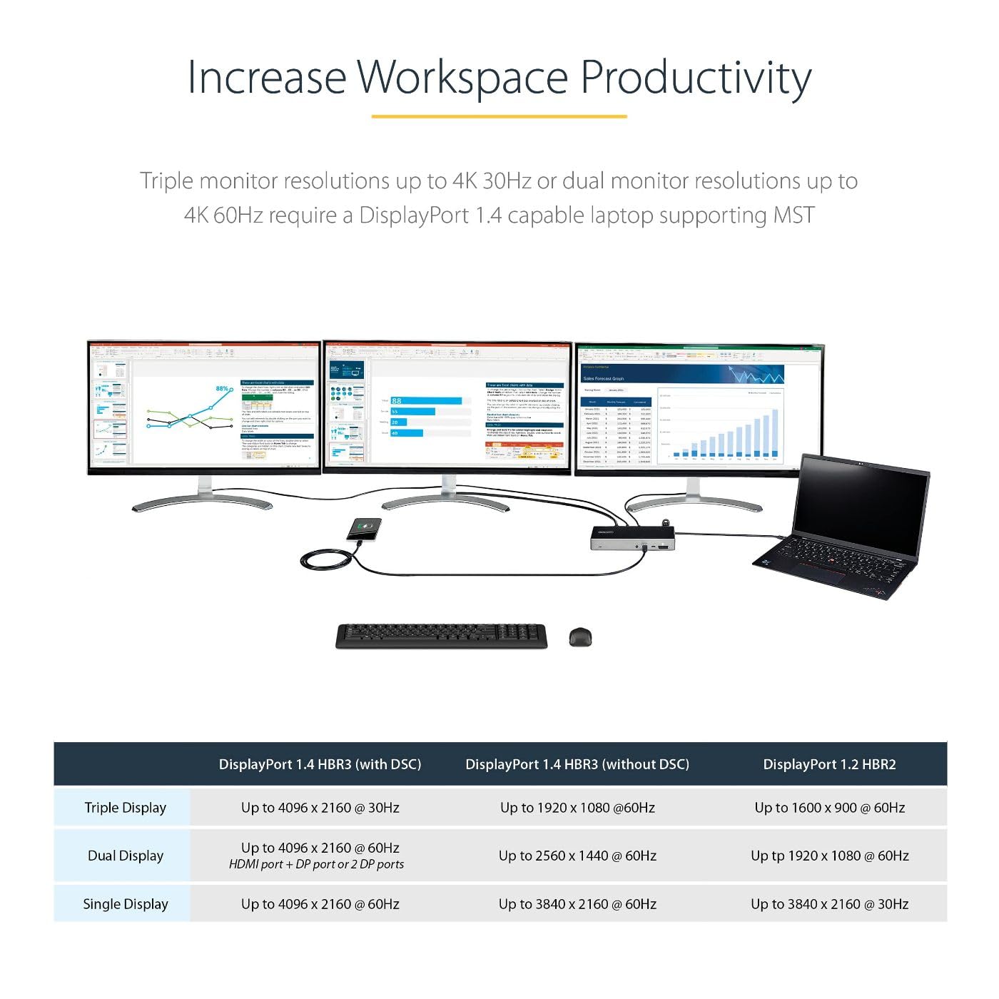 StarTech.com USB C Dock - Triple 4K Monitor USB Type-C Docking Station - 100W Power Delivery - DP 1.4 Alt Mode & DSC, 2X DisplayPort 1.4/HDMI 2.0-6xUSB (2X 10Gbps), SD - Windows/Chrome (DK31C2DHSPD)
