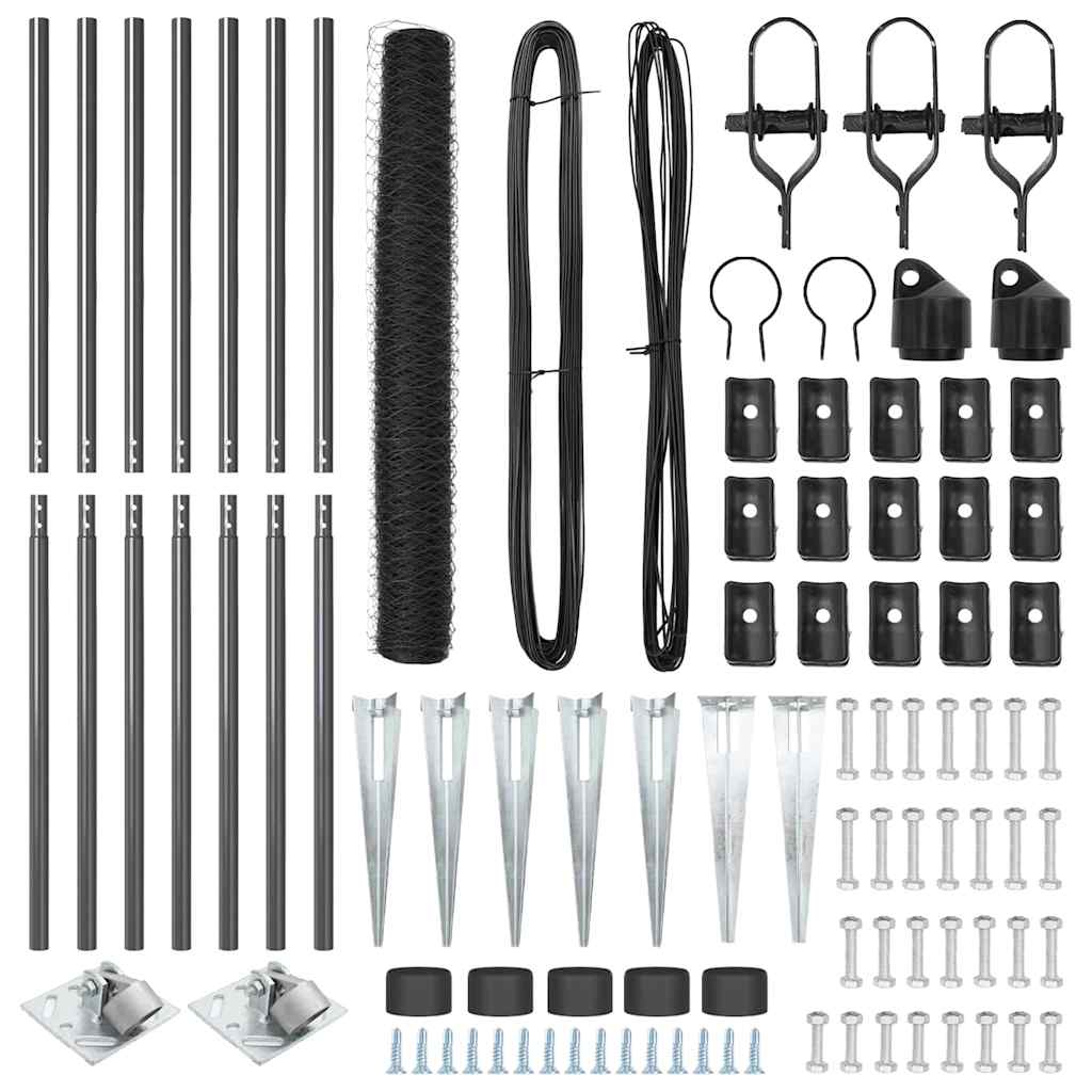 Zaunpfosten Grau 10 x 1,2 m (36 mm Netz) Stahl und PVC